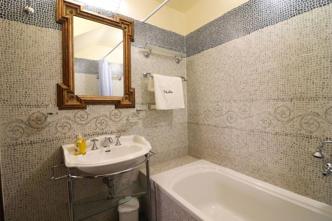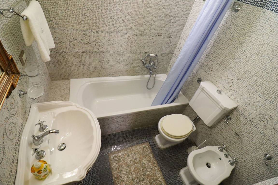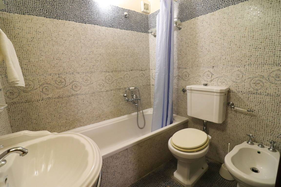 Badezimmer: Waschbecken, WC, Bidet, Badewanne, Fön, Waschmaschine.