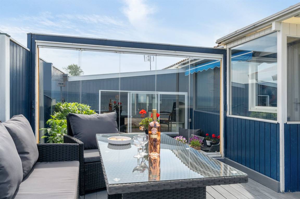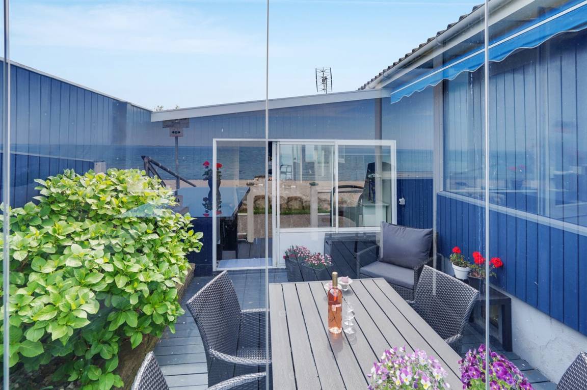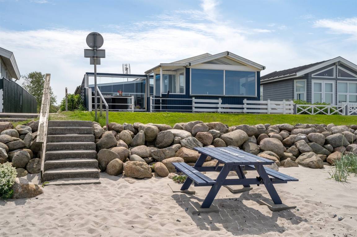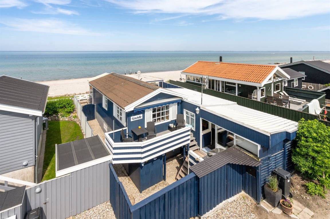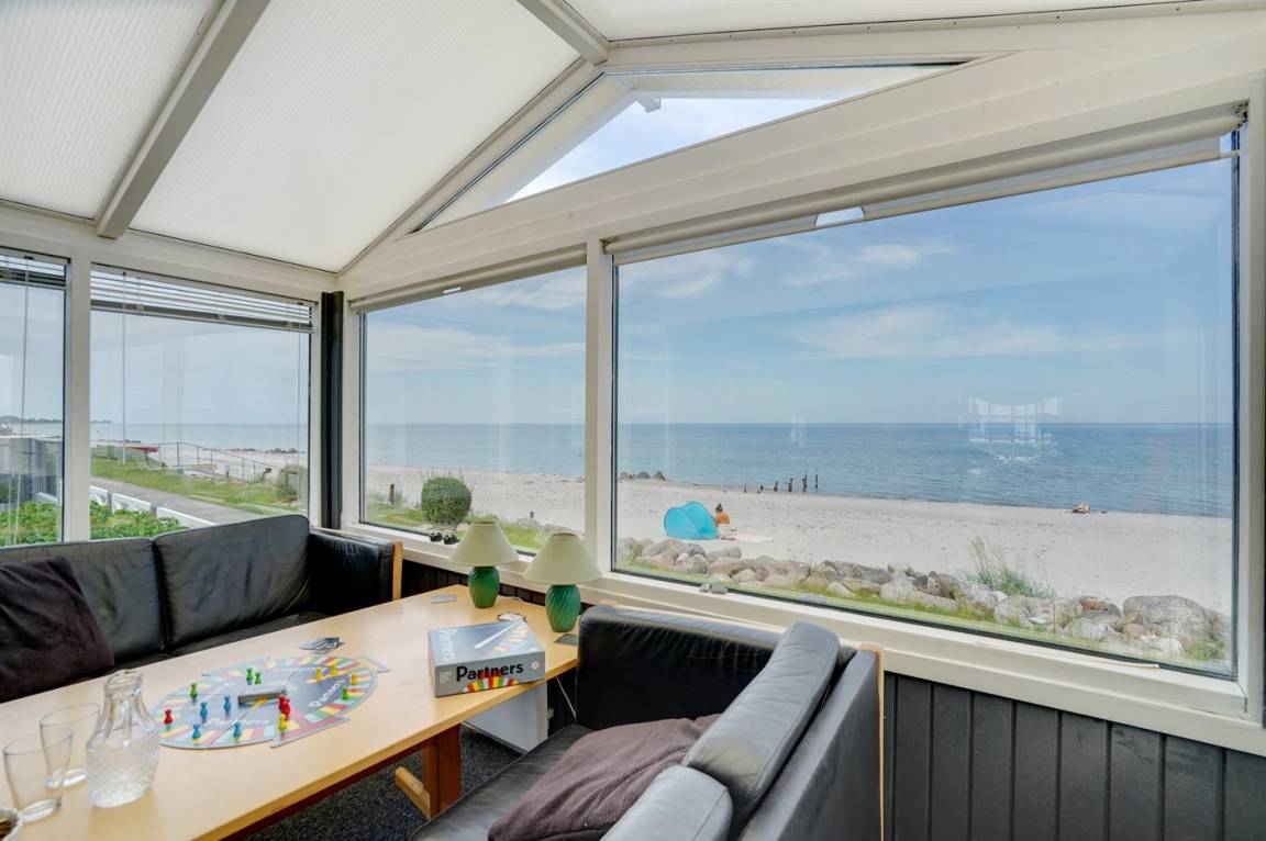 Hier haben Sie Meerblick-Garantie! Dieses gemütliche Ferienhaus liegt nämlich angrenzend an den schönen Strand von Hasmark. Hier liegt der Strand praktisch direkt angrenzend ans Wohnzimmer und die Terrassen. Das Haus ist von mehreren gemütlichen Terrassen umgeben, auf denen Sie immer ein ungestörtes Plätzchen finden. Das Haus liegt etwas erhöht. Schlaf- und Badezimmer befinden sich in der unteren Etage, Wohnzimmer, Küche und Esszimmer in der oberen Etage, von der Sie auch die geschlossene überdachte Terrasse mit Multitisch und verschiedenen Spielen betreten können. Übrigens: 2 der Schlafplätze befinden sich auf der Schlafcouch im Wintergarten oder im Wohnzimmer.