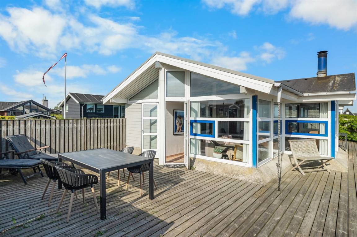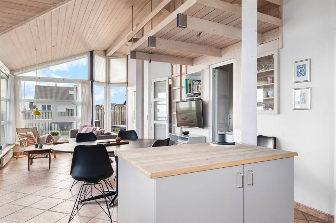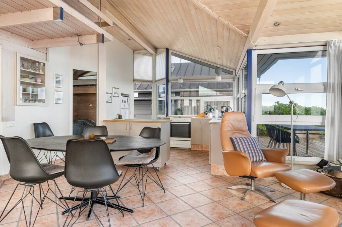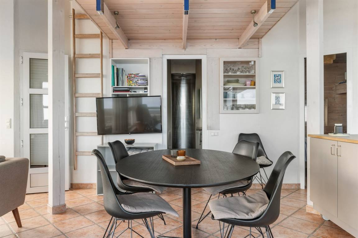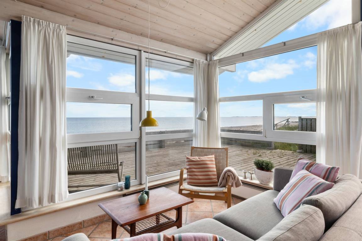 Vom Wohnzimmer kannst du direkt auf die Terrasse und weiter auf den Sandstrand gehen. Rund um das Haus gibt es eine schöne Terrasse, auf der du den ganzen Tag die Sonne genießen und abends den Sonnenuntergang beobachten kannst.