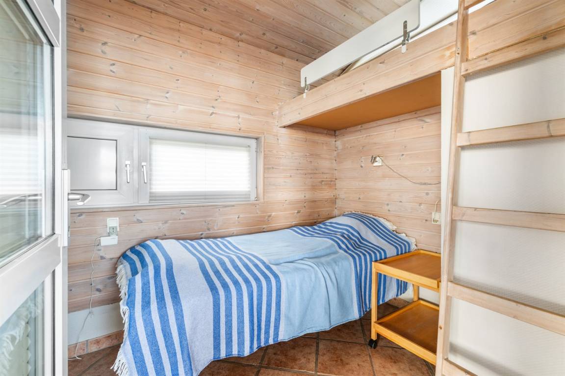 Beachte auch, dass zwei der Schlafplätze sich auf dem offenen Obergeschoss befinden und eines der Betten in einem der Zimmer ein Etagenbett ist. Diese Schlafplätze sind daher am besten für Kinder oder junge Menschen geeignet.