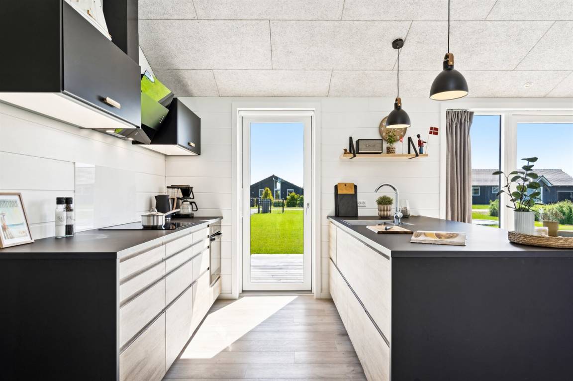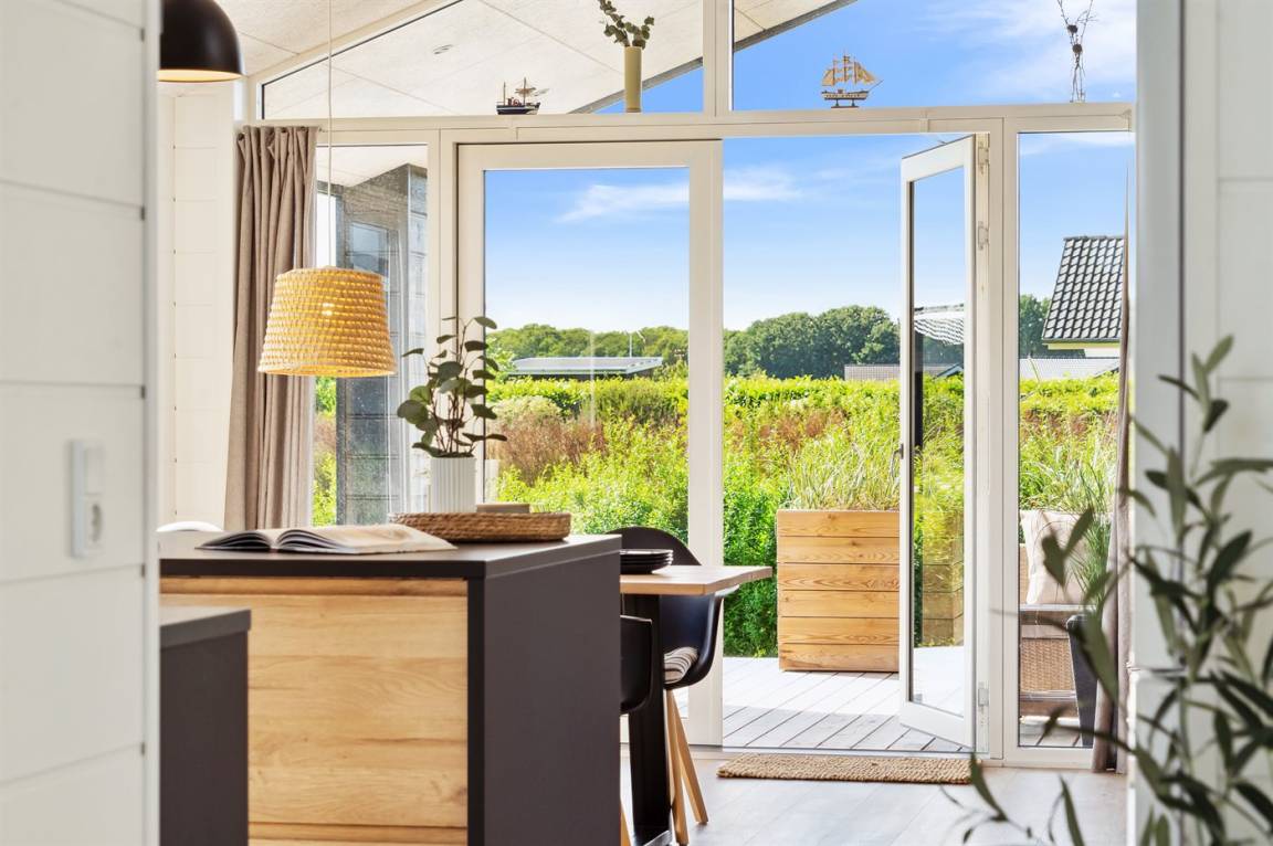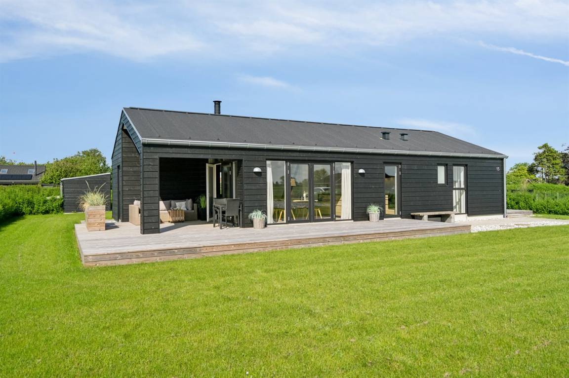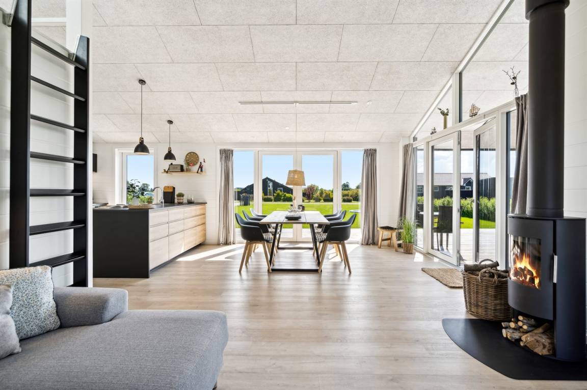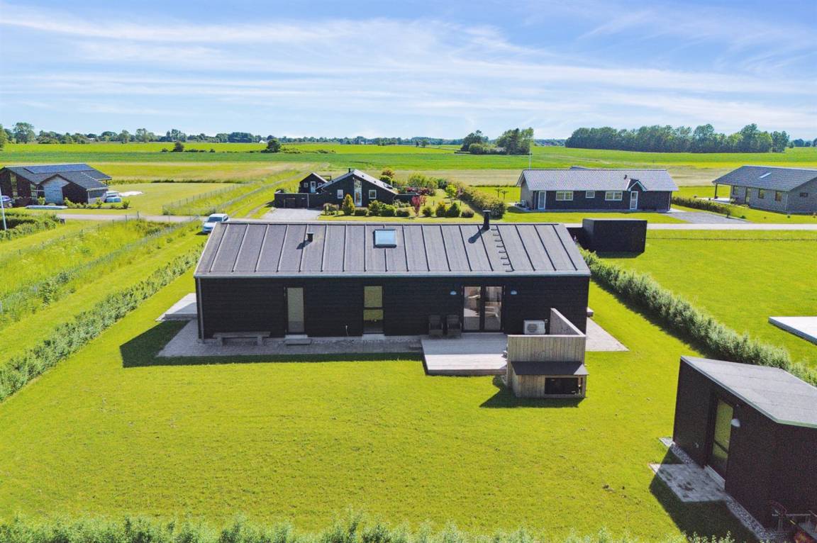 Ein herrliches Ferienhaus, 2022 gebaut, mit einer geräumigen Einrichtung und mehreren schönen Terrassen, die sich rund um das Haus verteilen. Das Haus tritt hell und einladend hervor und wurde aus hochwertigen Materialien gebaut.