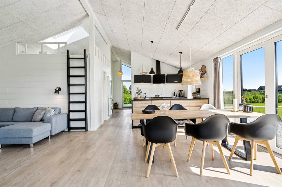 Das Ferienhaus eignet sich für 8 Personen sowie 1 Kleinkind bis zu 3 Jahren. Die Ferienunterkunft hat eine Wohnfläche von 107 m² und wurde 2022 gebaut. Haustiere dürfen nicht mitgebracht werden. Die Ferienunterkunft ist mit einer energiefreundlichen Luft-Luft-Wärmepumpe ausgestattet. Die Ferienunterkunft ist mit Waschmaschine ausgestattet. Tiefkühlmöglichkeit mit 60 Liter Nutzinhalt. Es gibt außerdem einen Kaminofen. Für die jüngsten Feriengäste ist 1 Kinderhochstuhl vorhanden.