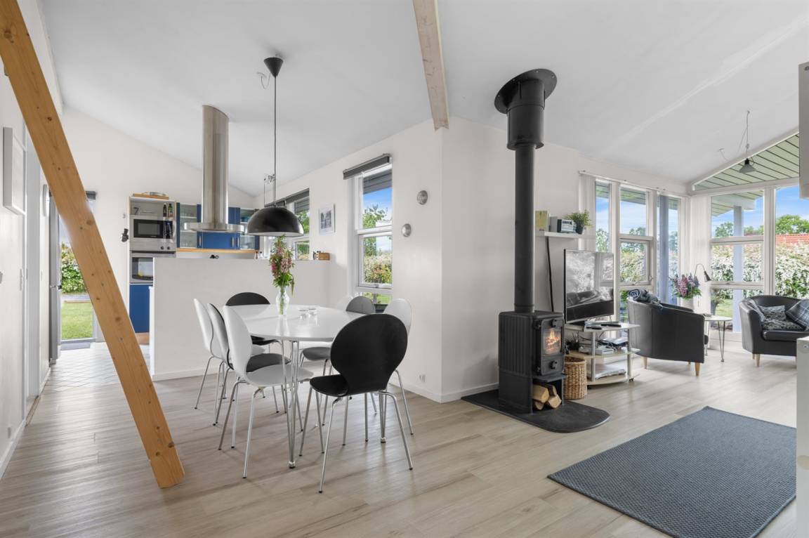 Das Ferienhaus eignet sich für 8 Personen sowie 1 Kleinkind bis zu 3 Jahren. Die Ferienunterkunft hat eine Wohnfläche von 94 m² und wurde 2001 gebaut. Es ist erlaubt 2 Haustiere mitzubringen. In der Ferienunterkunft ist eine energiesparender Luft zu Luft Wärmepumpe installiert. Die Ferienunterkunft ist mit Waschmaschine ausgestattet. Wäschetrockner. Tiefkühlmöglichkeit mit 100 Liter Nutzinhalt. Es gibt außerdem einen Kaminofen. Für die jüngsten Feriengäste ist 1 Kinderhochstuhl vorhanden.