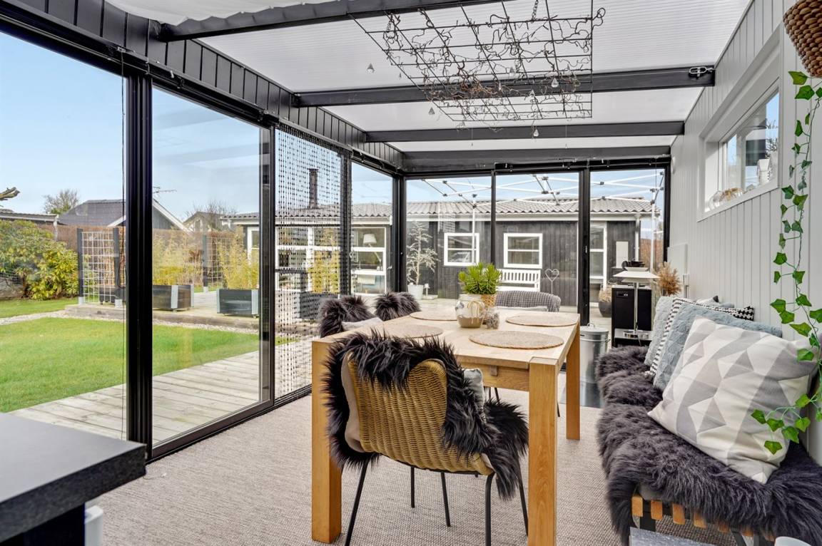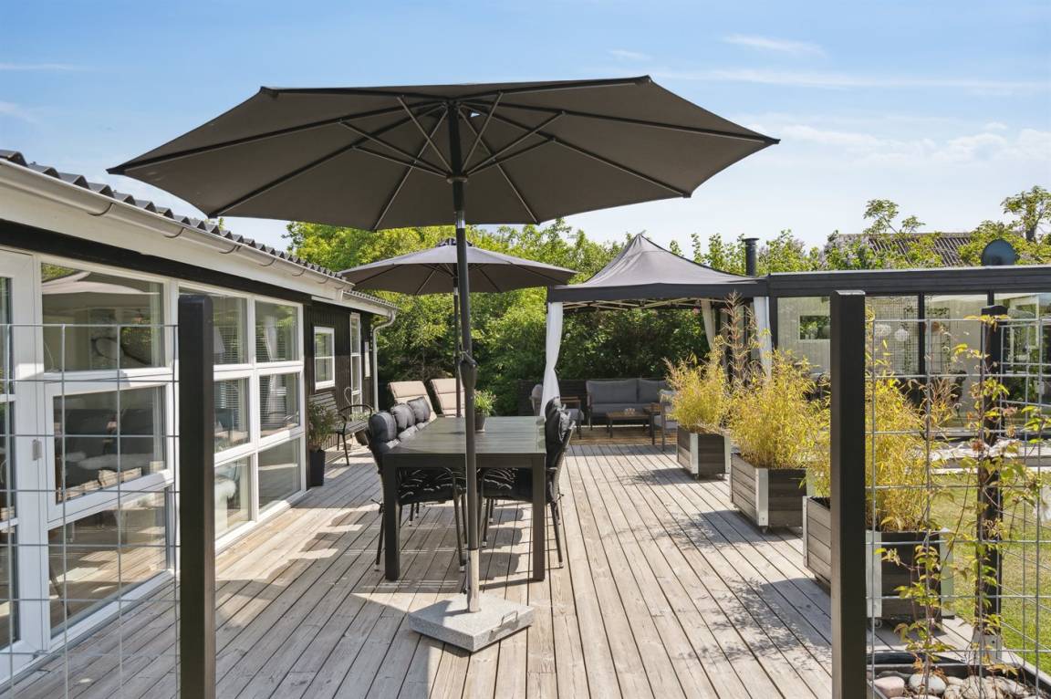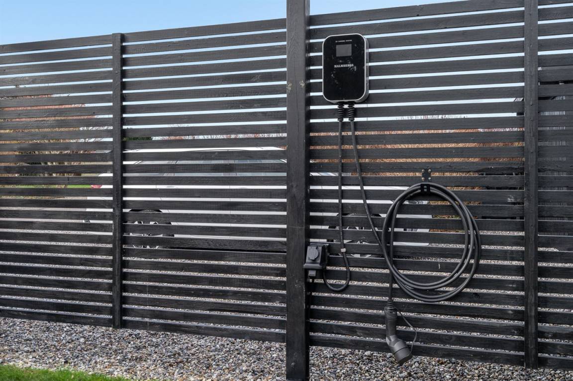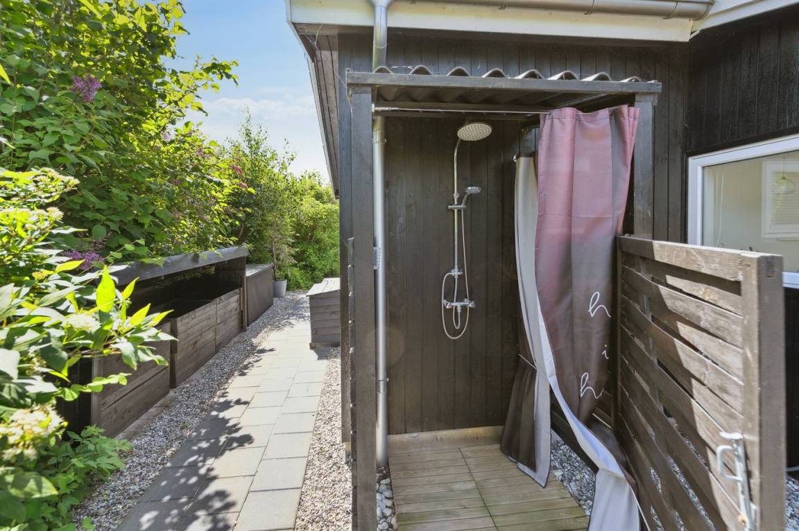 DraußenDie Ferienunterkunft liegt auf einem 800 m² großen Gartengrundstück. Die Entfernung zum Meer beträgt 125 m. Die nächste Einkaufsmöglichkeit liegt 5800 m entfernt. Es steht ein offenes Terrassenareal zur Verfügung. Außerdem gibt es überdachte Terrasse. Zutritt zu einem Wintergarten. Geräteraum. Schaukel.Lagerfeuerstelle. Außendusche. Es beteht die Möglichkeit das Essen in der Außenküche zuzubereiten. Es steht ein Grill zur Verfügung. Es ist ein Ladestecker für Elektroautos installiert. Ladestecker Typ 2. Mit einer Ladeleistung von 11 kW. Parkplatz auf dem Grundstück.