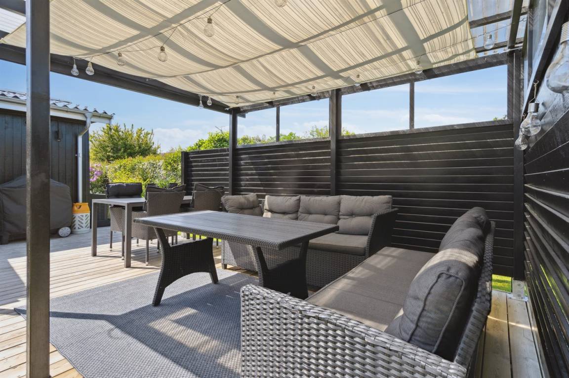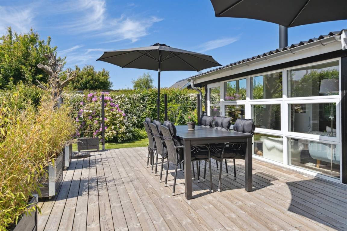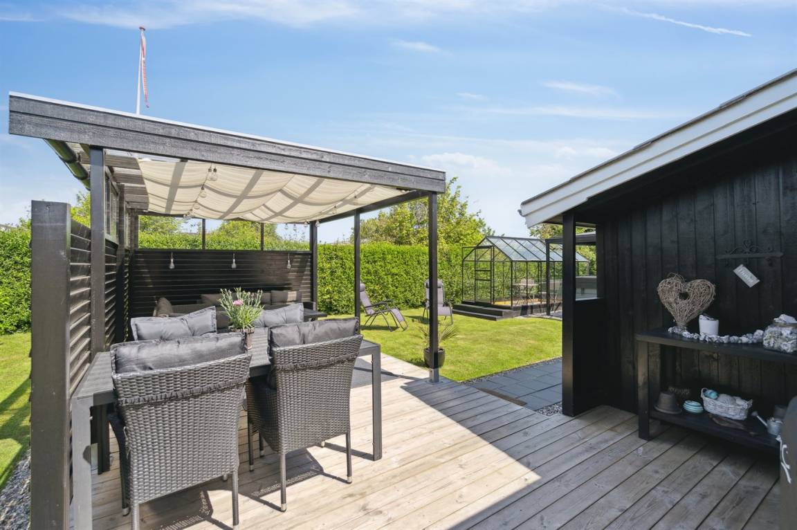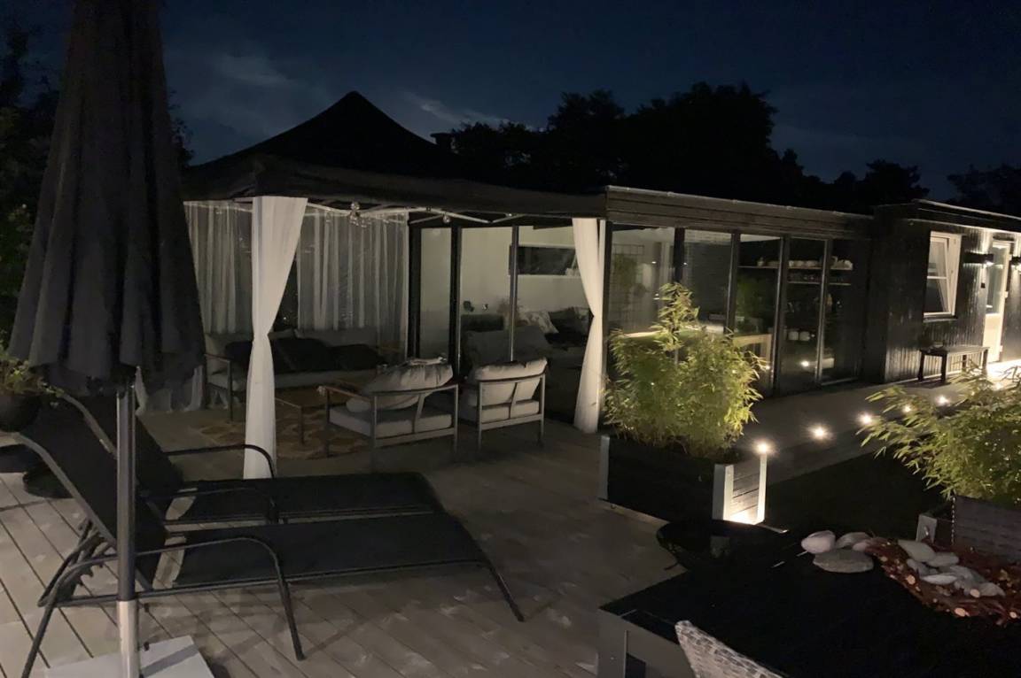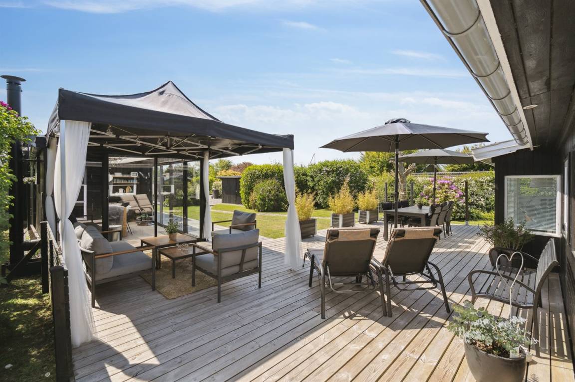 DraußenDie Ferienunterkunft liegt auf einem 800 m² großen Gartengrundstück. Die Entfernung zum Meer beträgt 125 m. Die nächste Einkaufsmöglichkeit liegt 5800 m entfernt. Es steht ein offenes Terrassenareal zur Verfügung. Außerdem gibt es überdachte Terrasse. Zutritt zu einem Wintergarten. Geräteraum. Schaukel.Lagerfeuerstelle. Außendusche. Es beteht die Möglichkeit das Essen in der Außenküche zuzubereiten. Es steht ein Grill zur Verfügung. Es ist ein Ladestecker für Elektroautos installiert. Ladestecker Typ 2. Mit einer Ladeleistung von 11 kW. Parkplatz auf dem Grundstück.