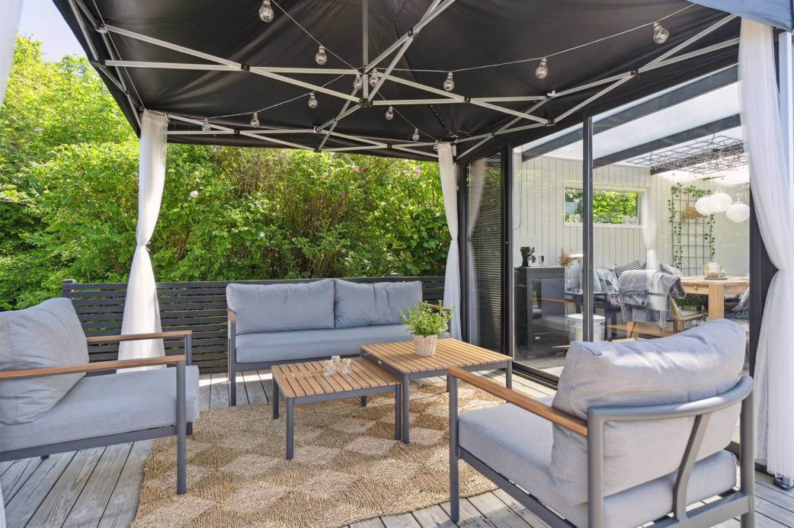 Rund um das Haus gibt es mehrere Terrassen, die teilweise überdacht sind. Ein Blickfang ist der tolle, gut ausgestattete Wintergarten, dessen Türen ganz geöffnet werden können. Im ungestörten Garten gibt es unter anderem ein Angebot aus verschiedenen Outdooraktivitäten für Kinder.