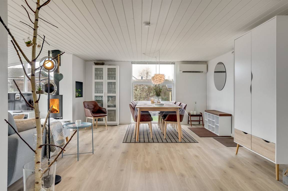 Das Ferienhaus eignet sich für 8 Personen sowie 1 Kleinkind bis zu 3 Jahren. Die Ferienunterkunft hat eine Wohnfläche von 131 m² und wurde 1964 gebaut. 2019 wurde die Ferienunterkunft renoviert. Haustiere dürfen nicht mitgebracht werden. Die Ferienunterkunft ist mit 2 energiefreundliche Luft-Luft-Wärmepumpen ausgestattet. Die Ferienunterkunft ist mit Waschmaschine ausgestattet. Tiefkühlmöglichkeit mit 60 Liter Nutzinhalt. Es gibt außerdem einen Kaminofen.Es gibt außerdem einen Holzpelletofen. Für die jüngsten Feriengäste ist 1 Kinderhochstuhl vorhanden.
