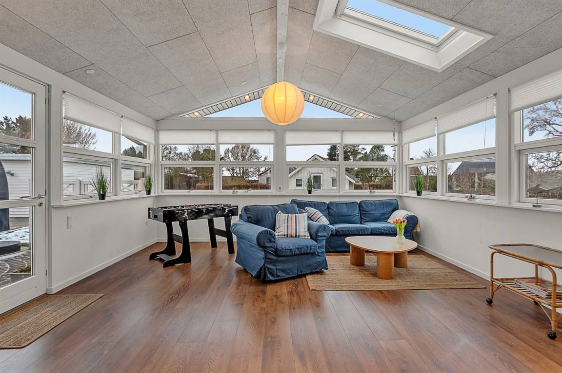 Herrliches Ferienhaus, das 2026 modernisiert ist. Das Haus ist gut eingerichtet und hat einen schönen Hobbyraum, der in Verbindung mit dem Wohnzimmer liegt. Von hier aus gelangst du auch auf die südlich ausgerichtete Terrasse.