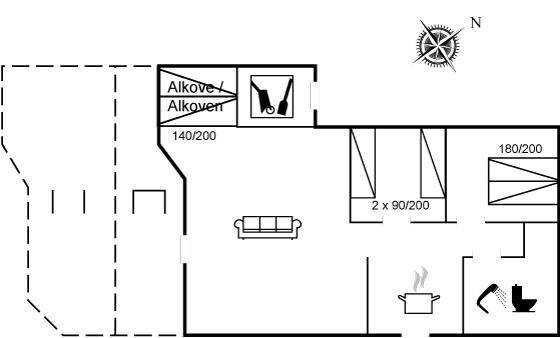 SchlafverhältnisseDie Schlafplätze verteilen sich auf 2 Schlafräume. 2 Schlafplätze in einem Doppelbett. 2 Schlafplätze in Einzelbetten.2 Schlafplätze im Alkoven. 2 von diesen Schlafplätzen befinden sich im Wohnzimmer. Ferner steht ein Kinderbett zur Verfügung.