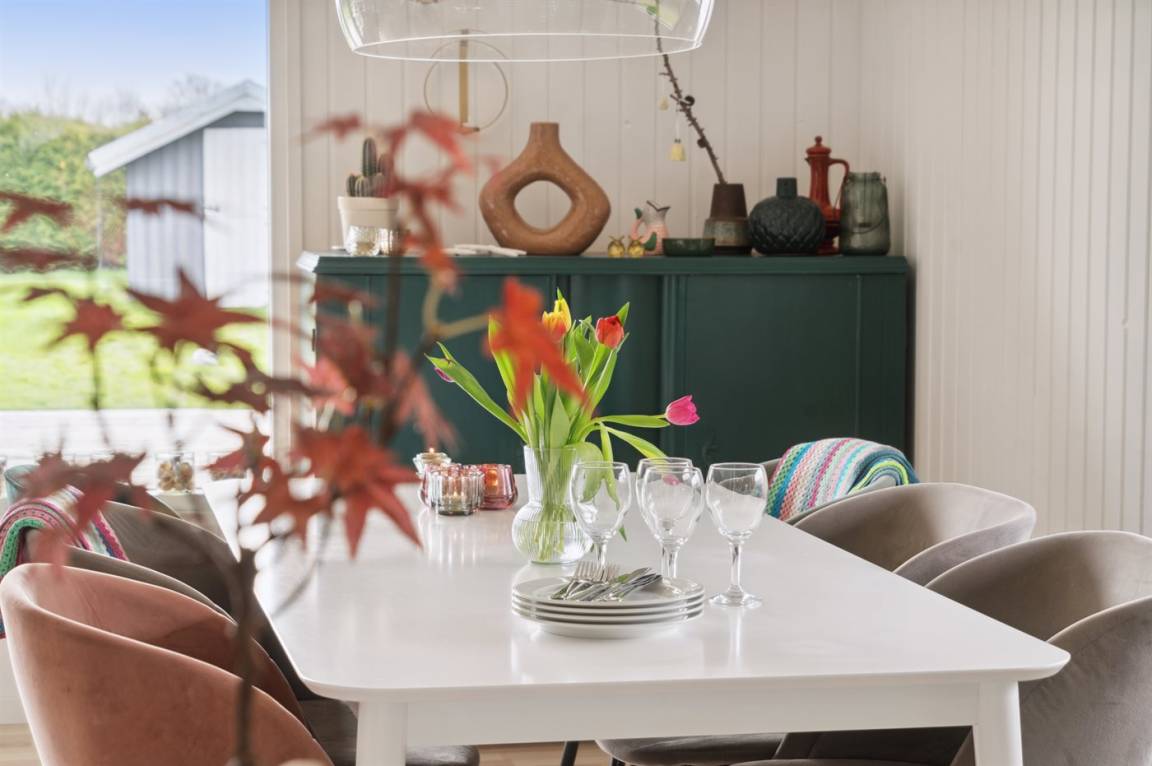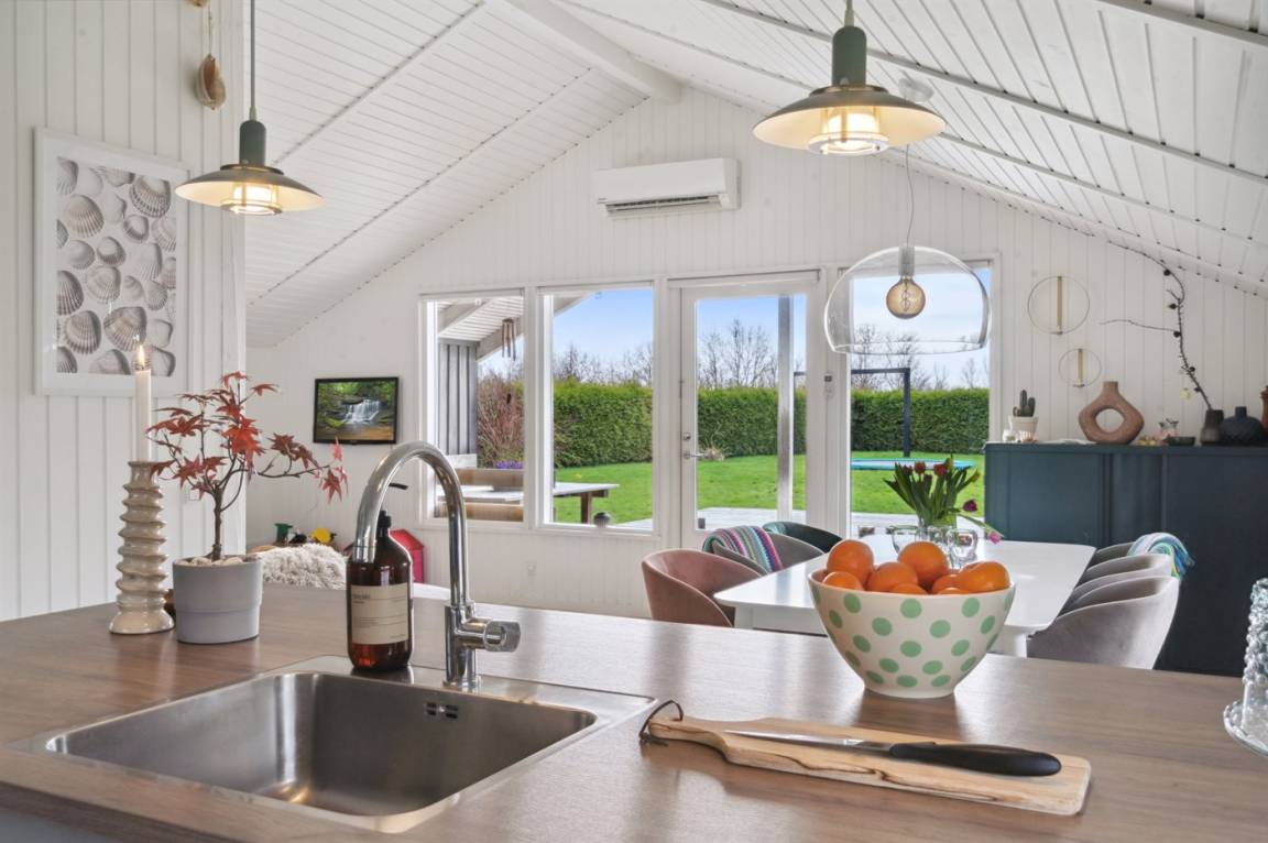 Ein gemütliches, nettes Ferienhaus in dem beliebten Feriengebiet Hasmark. Das Haus liegt auf einem großen Grundstück mit viel Platz für Aktivitäten im Freien.