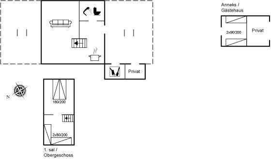 SchlafverhältnisseDie Schlafplätze verteilen sich auf 3 Schlafräume. 2 Schlafplätze in einem Doppelbett. 4 Schlafplätze in Einzelbetten. 2 von diesen Schlafplätzen befinden sich im Gästehaus.
