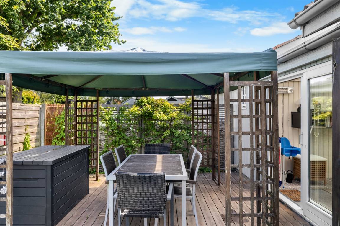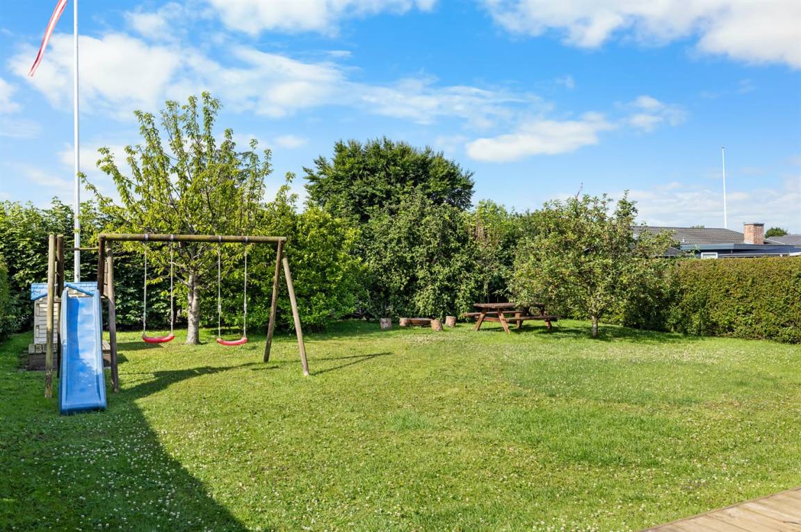 Der schöne, nach Süden ausgerichtete Garten bietet zahlreiche Aktivitäten für Kinder und Erwachsene an. Außerdem gibt es mehrere schöne Terrassenbereiche – einer davon ist dank eines Pavillons überdacht.