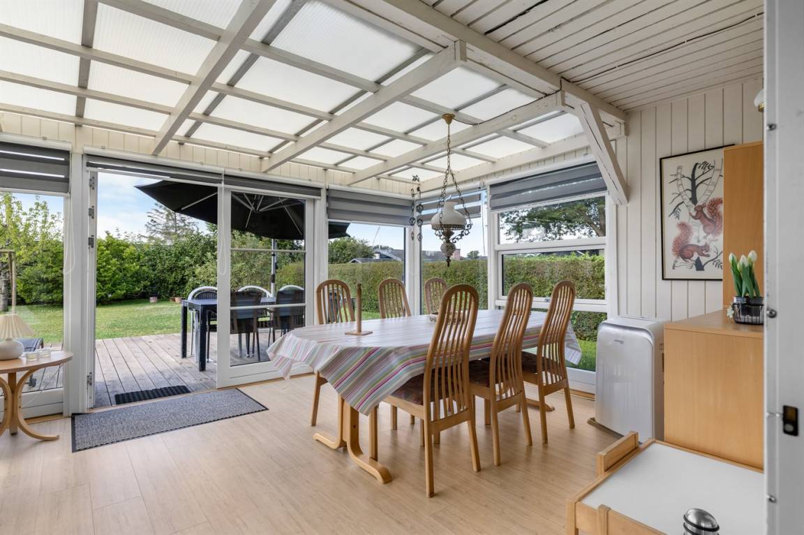 Es gibt einen großen, wohnlich eingerichteten Wintergarten, der an das Wohnzimmer angrenzt und Wohnzimmer, Wintergarten und das ehemalige Gästehaus miteinander verbindet.