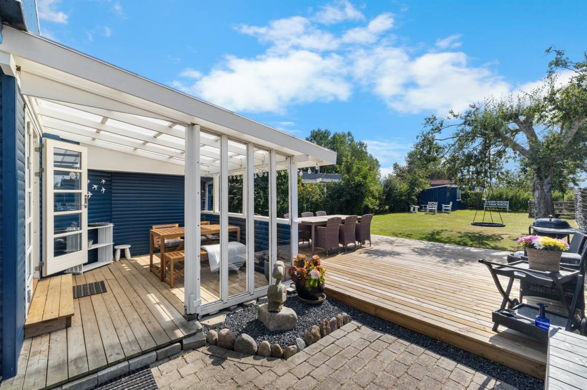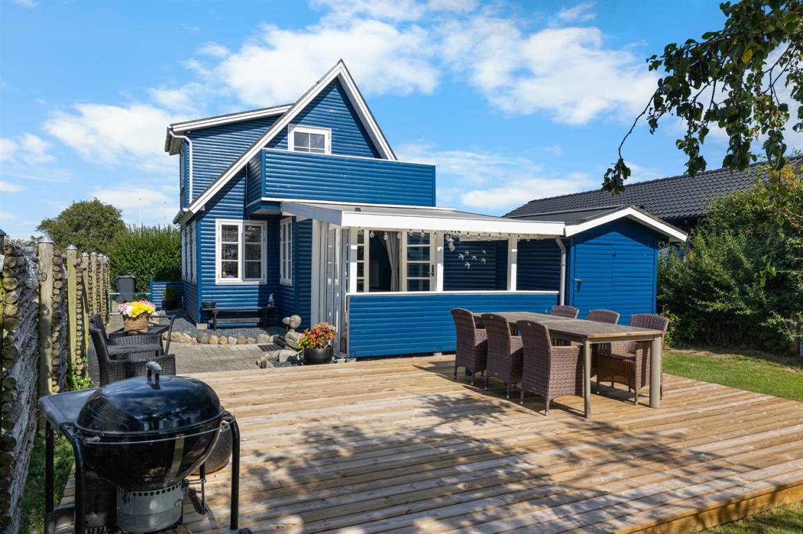 DraußenDie Ferienunterkunft liegt auf einem 446 m² großen Gartengrundstück. Die Entfernung zum Meer beträgt 150 m. Die nächste Einkaufsmöglichkeit liegt 2000 m entfernt. Es steht ein offenes Terrassenareal zur Verfügung. Außerdem gibt es überdachte Terrasse.Balkon im Obergeschoss. Schaukel.Lagerfeuerstelle. Es steht ein Grill zur Verfügung. Parkplatz auf dem Grundstück.