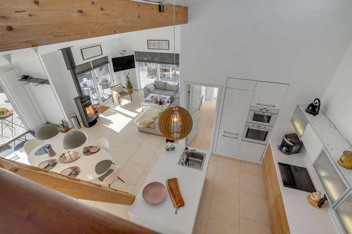 Dieses schöne Ferienhaus ist auf einem abgeschirmten Grundstück nur 70 m vom Wasser entfernt, mit eigenem Eingang und Parkplatz für 2 PKW's gebaut. Von allen Räumen des Hauses haben Sie Zutritt zu einem großen Terrassenareal. Das geräumige Ferienhaus mit schrägenden Decken ist geschmackvoll eingerichtet und die großen Fensterfronten sorgen für einen guten Lichteinfall.