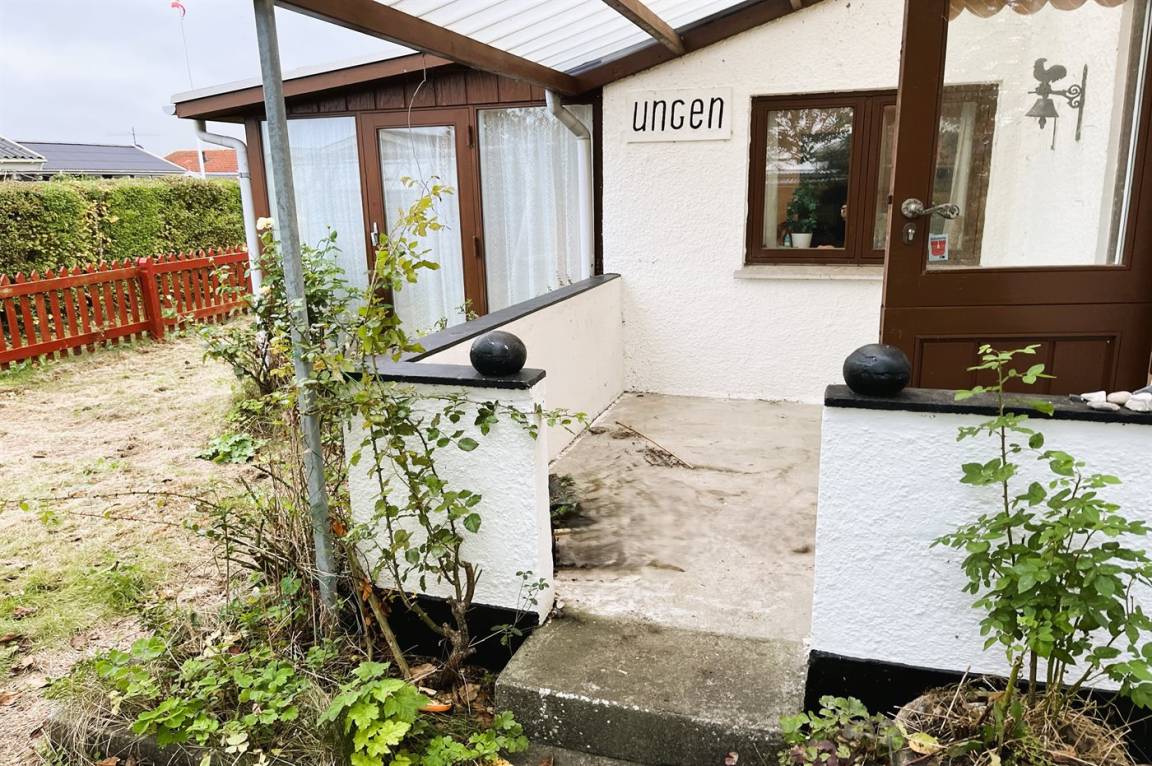 Die überdachte Terrasse und das kleinere, aber gemütliche Grundstück bieten unter anderem eine Schaukel und weitere Aktivitäten für Kinder.