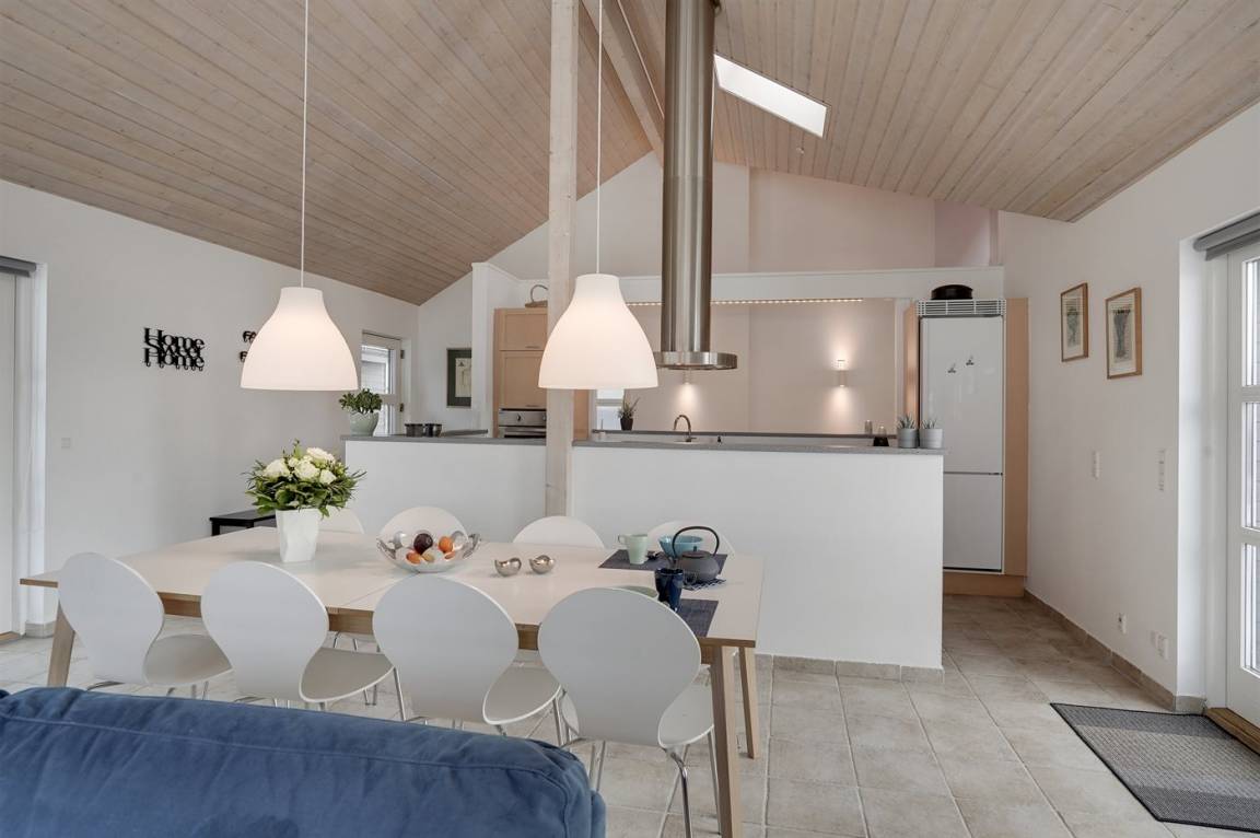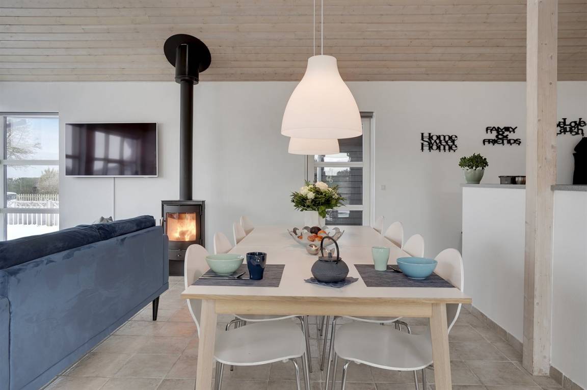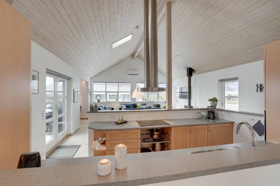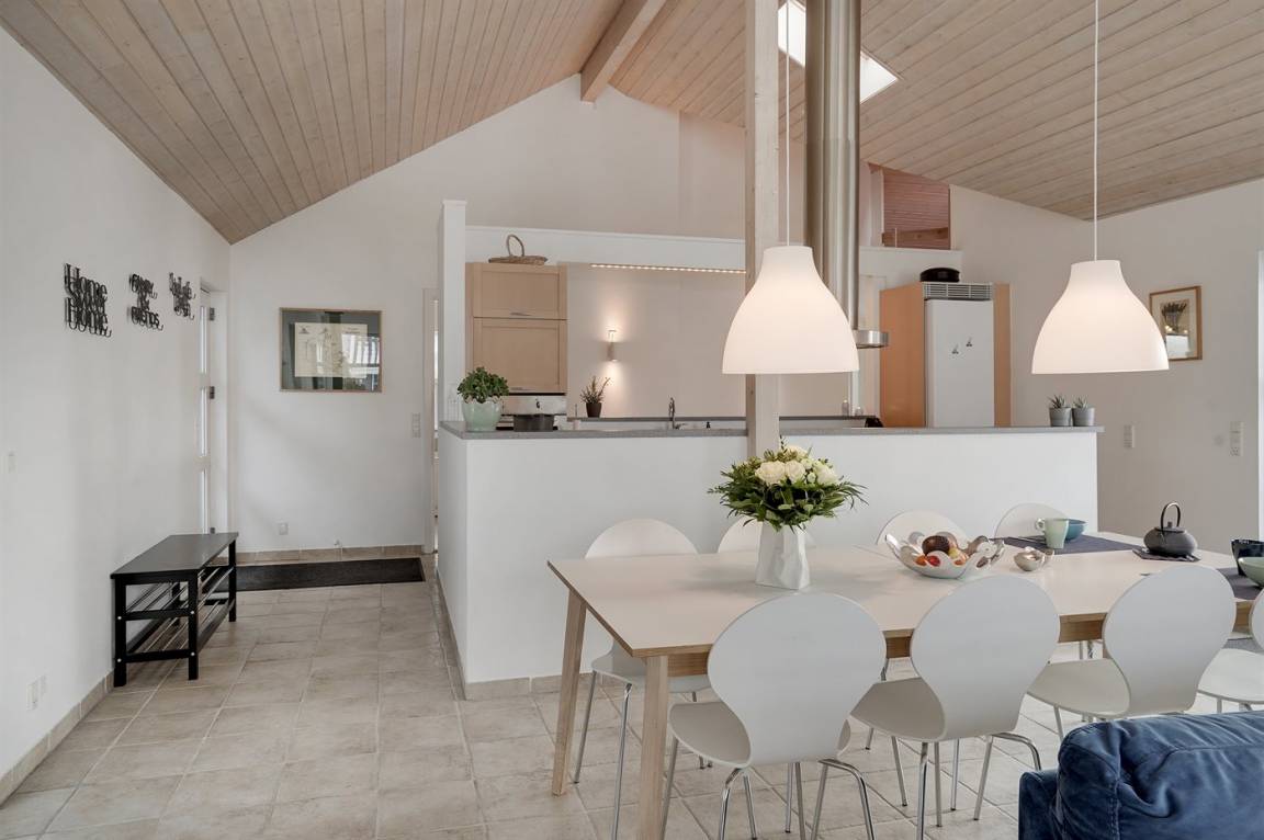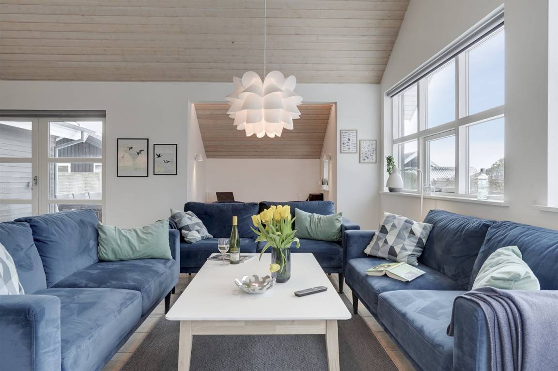 In dem großen Badezimmer gibt es einen 2-Pers.-Whirlpool. Das offene Obergeschoss ist gemütlich eingerichtet mit FATBOY Sitzsäcke, Flatscreen-TV mit der möglichkeit den eigenen Nintendo etc. anschließen können. Das Wohnzimmer, mit Ausgang zur südwestlich gelegenen Terrasse, liegt im Anschluss an die Wohnküche. Die Möbel sind modern und bequem. Das Wohnzimmer ist außerdem mit einem Alkoven eingerichtet, hier können Sie im Homeoffice arbeiten oder die Kids können malen oder Spiele spielen. Es steht ein großer Fernseher mit Smart-TV, ein Bluetooth-Lautsprecher von Harman Kardon, Internet (500/500 Mbit) und ein Kamin zur Verfügung. Eine energiesparende Wärmepumpe sorgt dafür, dass das Ferienhaus auch im Winter benutzt werden kann. Es gibt Terrassen in Richtung Osten, Westen und Südwesten. Das Haus wurde im Herbst 2020 modernisiert.