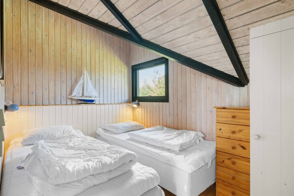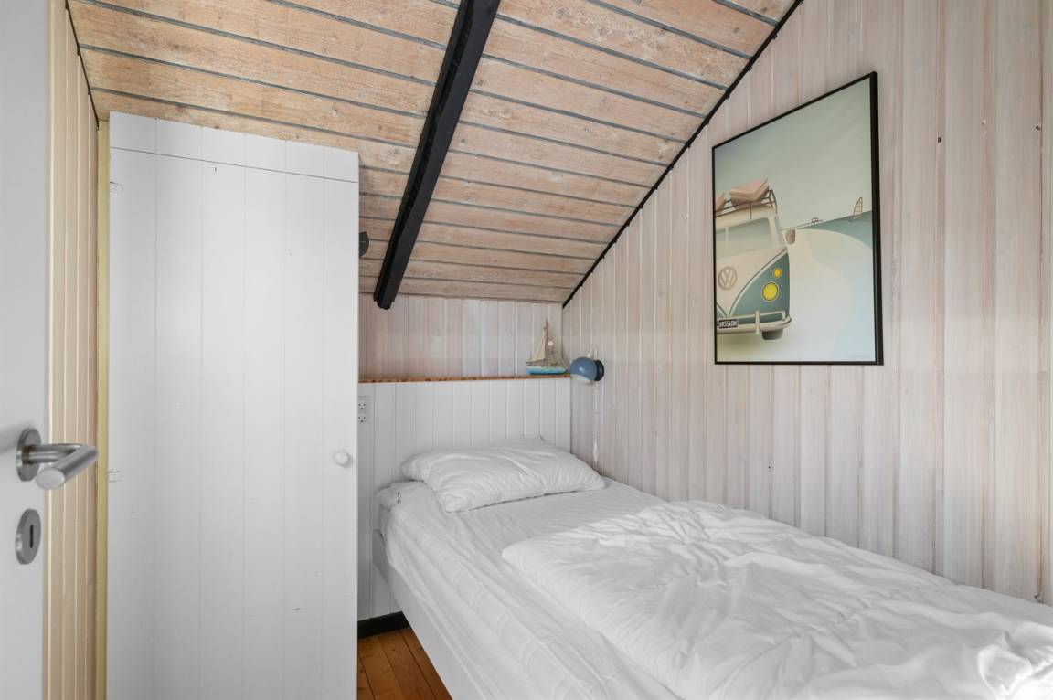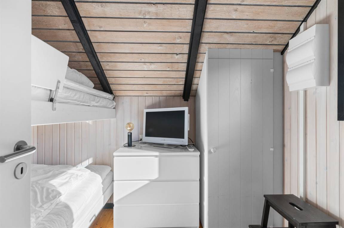 Bitte beachten: Einer der Schlafplätze befindet sich im oberen Etagenbett unter einer Dachschräge und ist daher am besten für ein Kind geeignet.