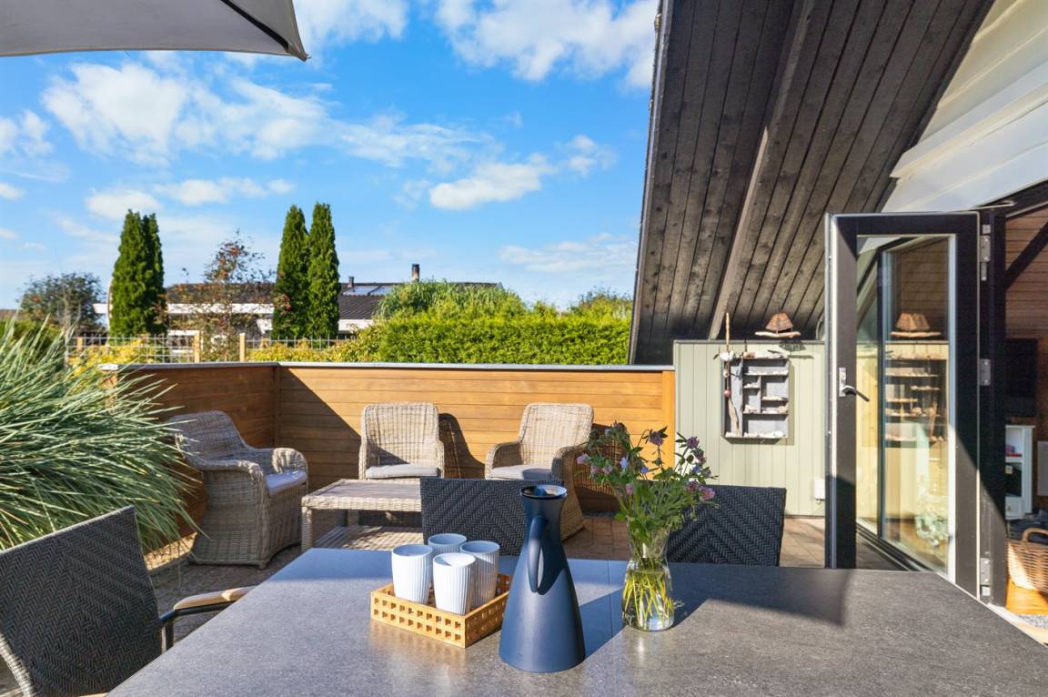 Ein schönes Ferienhaus mit herrlichen Terrassen rund ums Haus.