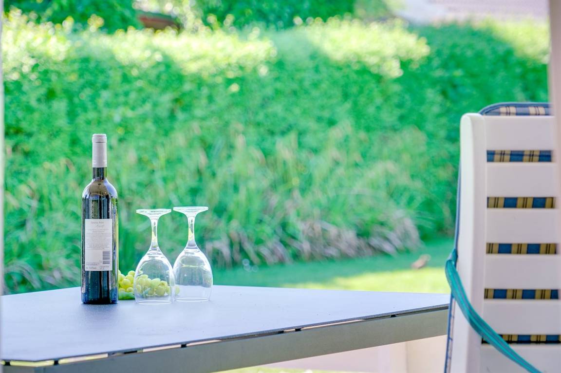 DraußenDie Ferienunterkunft liegt auf einem 800 m² großen Gartengrundstück. Die Entfernung zum Meer beträgt 100 m. Die nächste Einkaufsmöglichkeit liegt 5000 m entfernt. Es steht ein 65 m² Terrassenareal zur Verfügung. Außerdem gibt es 20 m² überdachte Terrasse. Es steht ein Grill zur Verfügung. Parkplatz auf dem Grundstück.