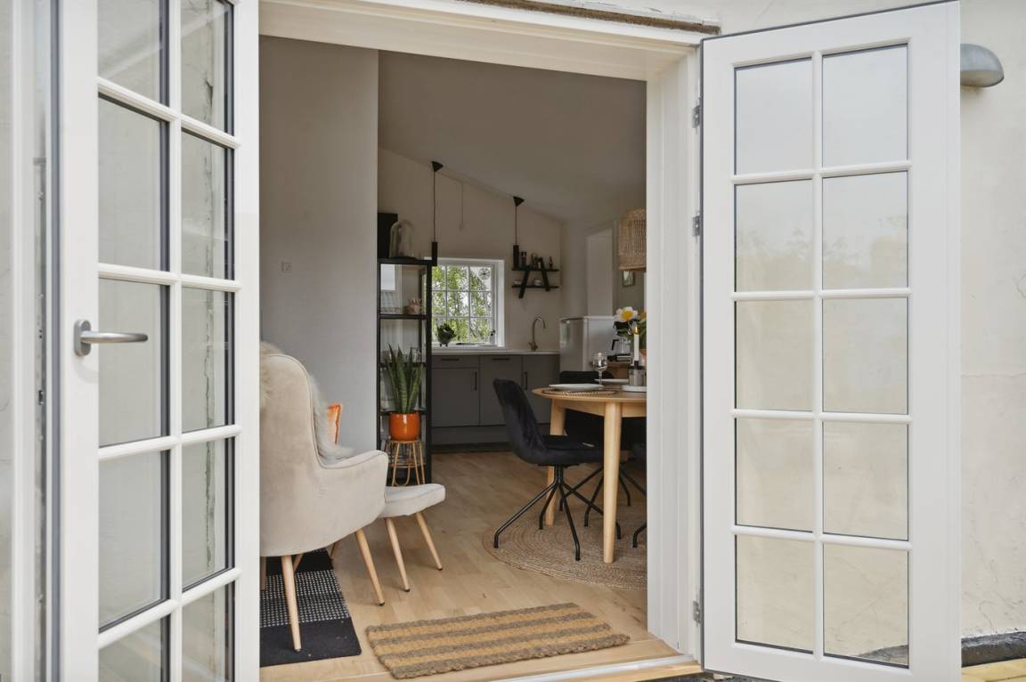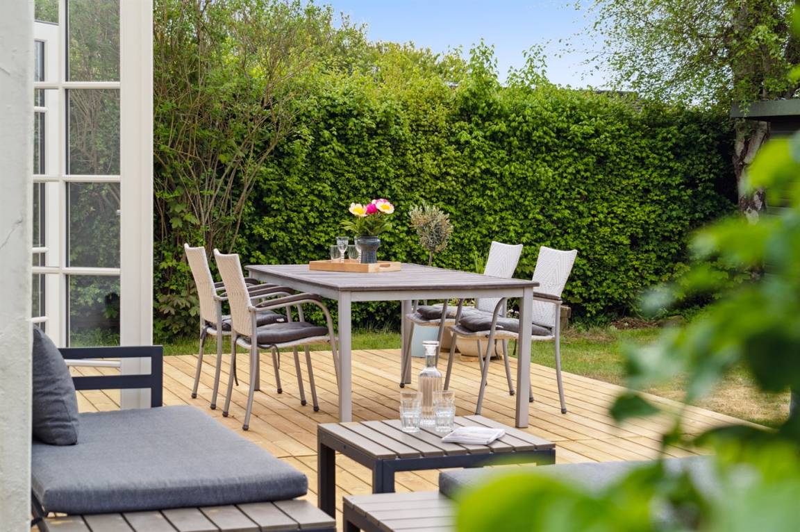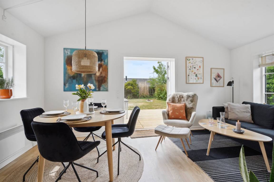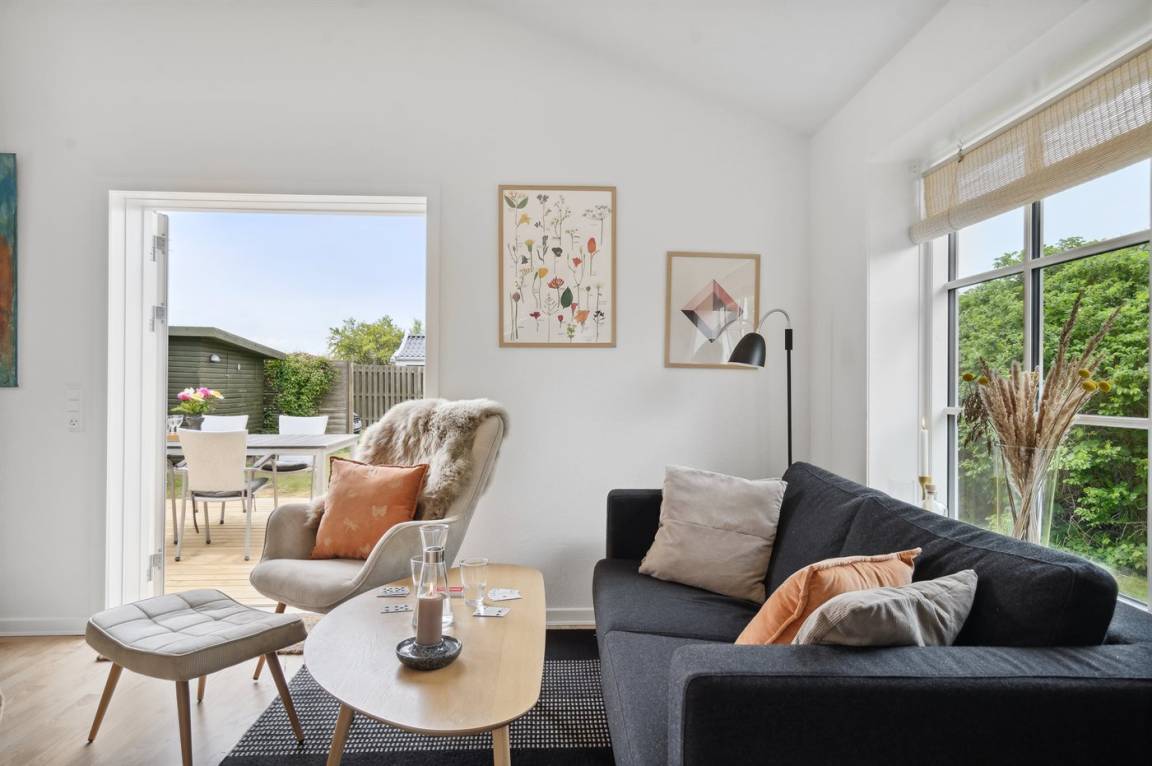 Neu renoviertes, gemütliches kleines Ferienhaus in 1. Reihe zum schönen Badestrand von Jørgensø. Das Haus ist hell und hübsch eingerichtet und liegt direkt hinterm Deich, sodass hier fast immer ruhige Windverhältnisse und damit selbst an windigen Tagen gute Möglichkeiten herrschen, die Terrasse und den ungestörten Garten zu genießen.
