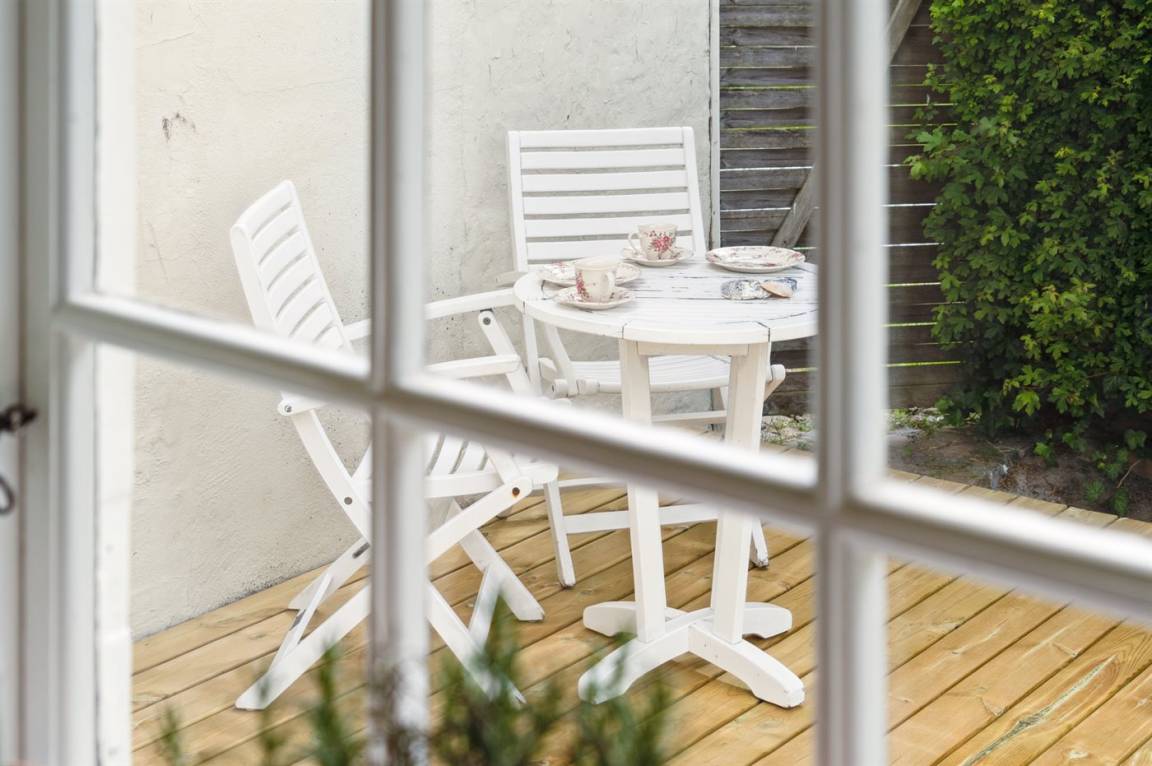 DraußenDie Ferienunterkunft liegt auf einem 419 m² großen Gartengrundstück. Die Entfernung zum Meer beträgt 50 m. Die nächste Einkaufsmöglichkeit liegt 2500 m entfernt. Es steht ein offenes Terrassenareal zur Verfügung. Außerdem gibt es überdachte Terrasse. Feuerschale. Es steht ein Grill zur Verfügung. Parkplatz auf dem Grundstück.