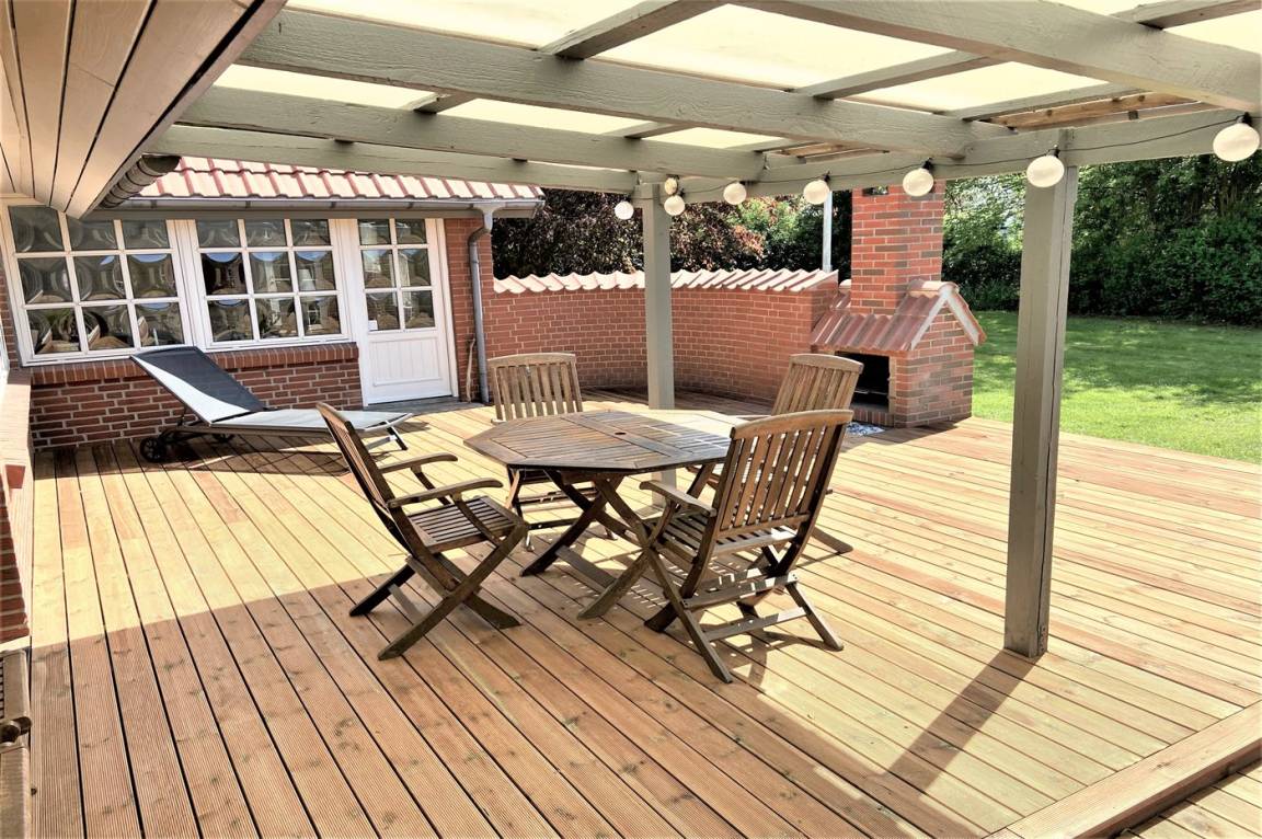 DraußenDie Ferienunterkunft liegt auf einem 770 m² großen Gartengrundstück. Die Entfernung zum Meer beträgt 75 m. Die nächste Einkaufsmöglichkeit liegt 2900 m entfernt. Es steht ein 25 m² Terrassenareal zur Verfügung. Außerdem gibt es 14 m² überdachte Terrasse. Davon insgesamt 14 m² geschlossene Terrasse. Es steht ein Carport zur Verfügung. Parkplatz auf dem Grundstück.