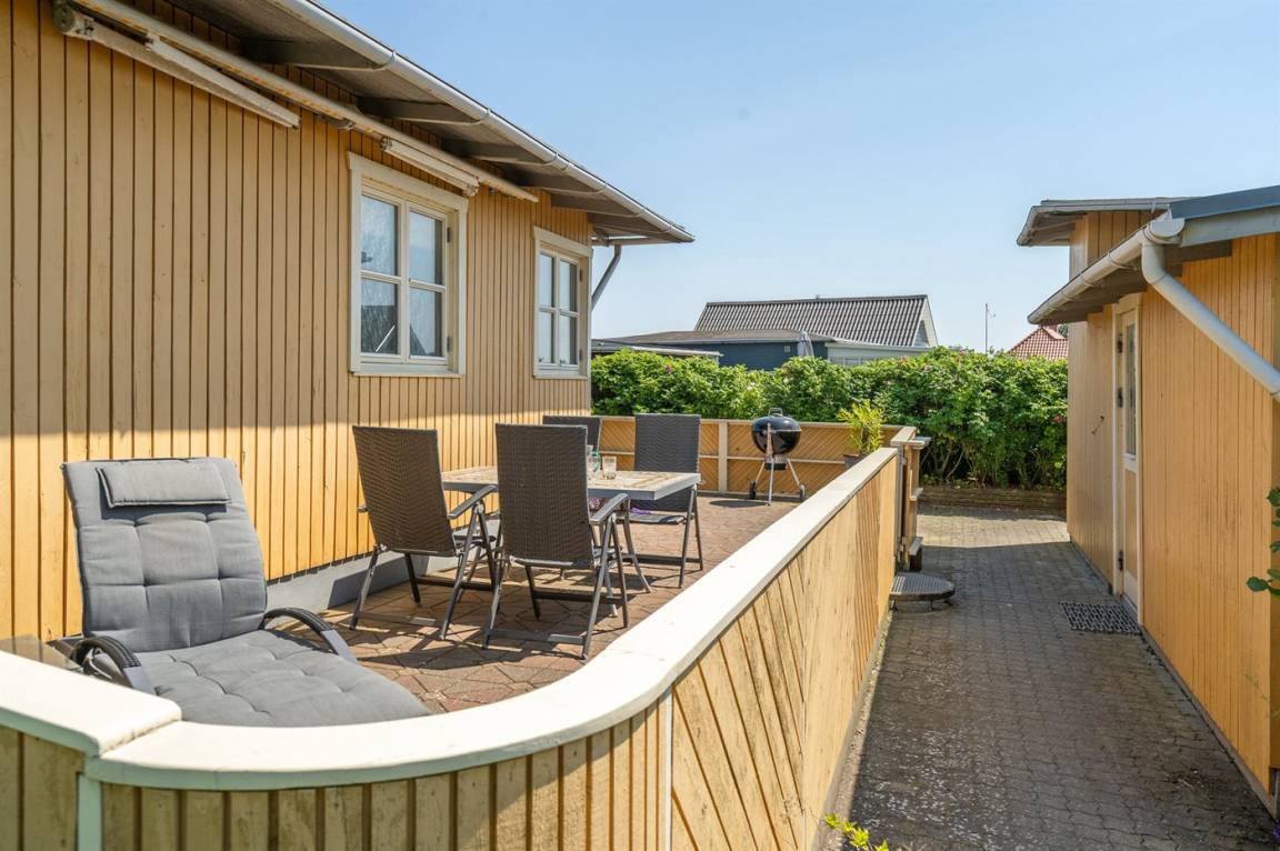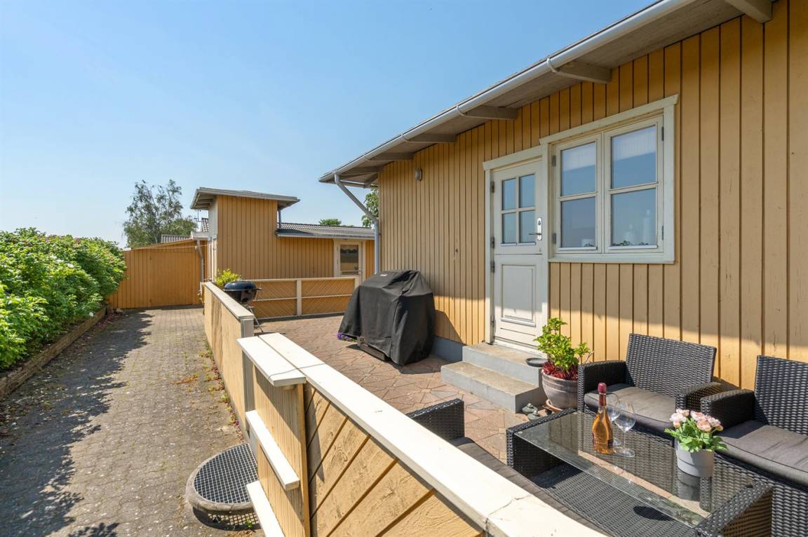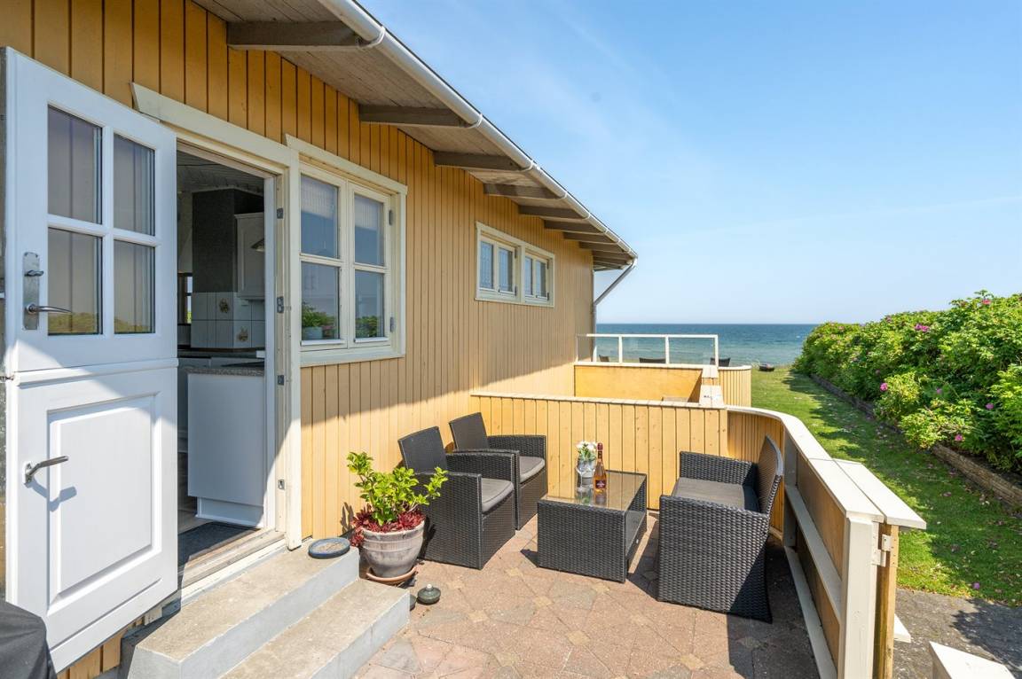 DraußenDie Ferienunterkunft liegt auf einem 1242 m² großen Gartengrundstück. Die Entfernung zum Meer beträgt 5 m. Die nächste Einkaufsmöglichkeit liegt 2500 m entfernt. Es steht ein 70 m² Terrassenareal zur Verfügung. Geräteraum. Es steht ein Grill zur Verfügung. Parkplatz auf dem Grundstück.