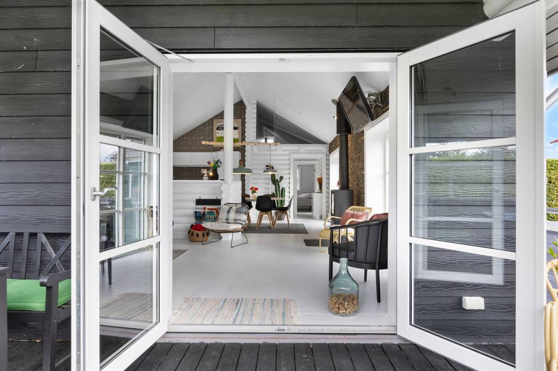 DraußenDie Ferienunterkunft liegt auf einem 1173 m² großen Gartengrundstück. Die Entfernung zum Meer beträgt 320 m. Die nächste Einkaufsmöglichkeit liegt 4500 m entfernt. Es steht ein offenes Terrassenareal zur Verfügung. Außerdem gibt es überdachte Terrasse. Schaukel. Sandkasten.Lagerfeuerstelle. Es steht ein Grill zur Verfügung. Es ist ein Ladestecker für Elektroautos installiert. Parkplatz auf dem Grundstück.