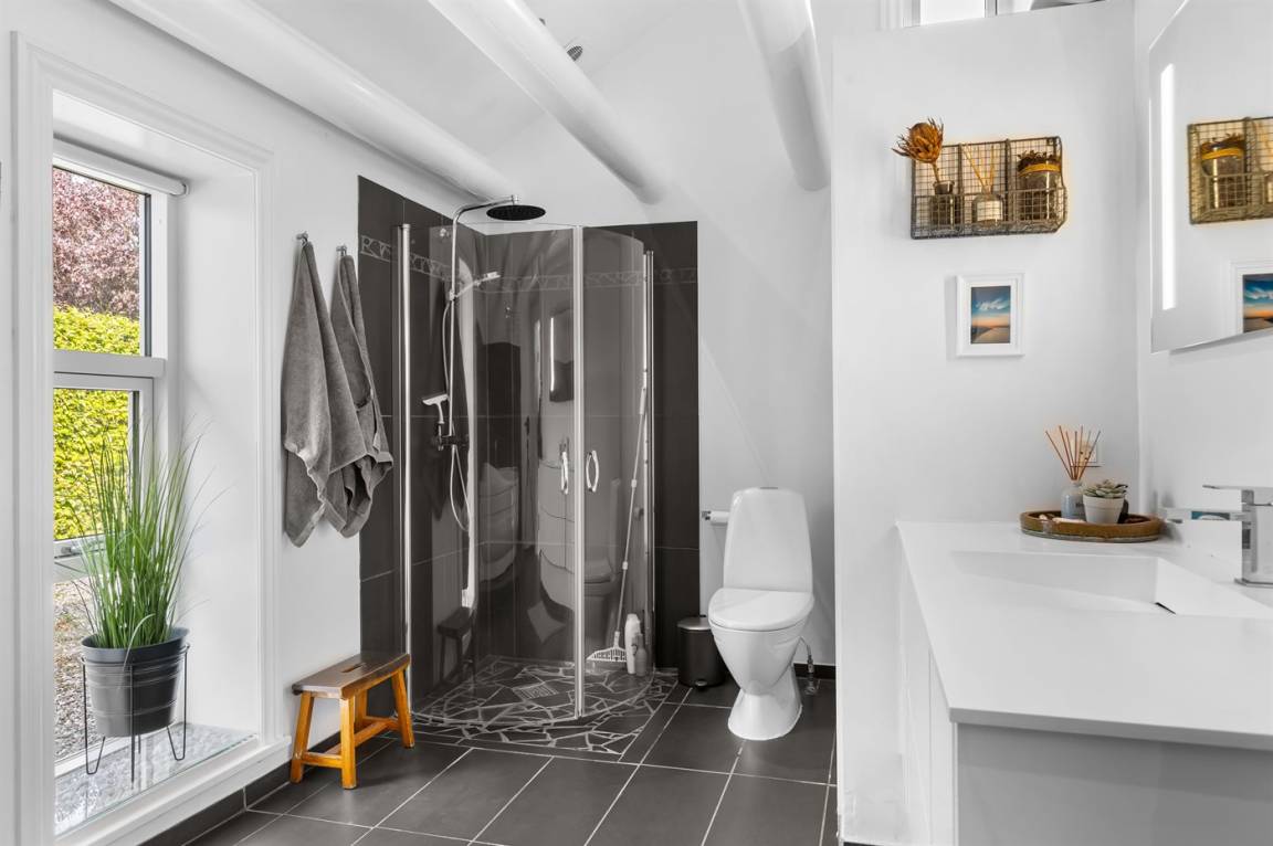 WC und BadEs gibt 1 Badezimmer mit Duschnische und 2 Toiletten, davon 1 Gästetoilette. Fußbodenheizung in 1 Badezimmer. Fußbodenheizung in der Gästetoilette.