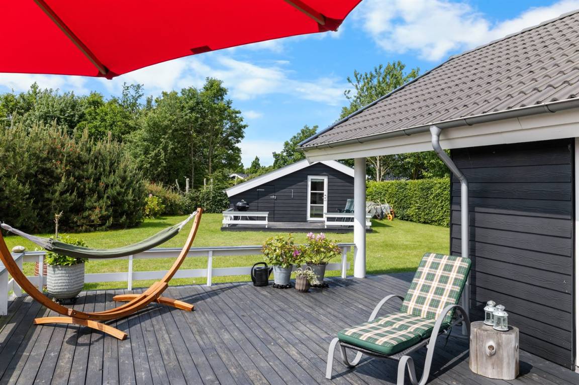 Ein schönes Ferienhaus im beliebten Hasmark, wo sich einer der besten Badestrände Fünens befindet. Das Haus liegt auf einem ungestörten Grundstück mit großem, südlich ausgerichtetem Terrassenbereich, von dem ein Teil überdacht ist. Das Ferienhaus präsentiert sich innen wie außen in einem hervorragenden Zustand.