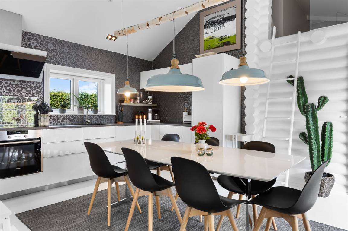 Das Ferienhaus eignet sich für 6 Personen sowie 2 Kleinkinder bis zu 3 Jahren. Die Ferienunterkunft hat eine Wohnfläche von 96 m² und wurde 2003 gebaut. 2019 wurde die Ferienunterkunft teilweise renoviert. Haustiere dürfen nicht mitgebracht werden. In der Ferienunterkunft ist eine energiesparender Luft zu Luft Wärmepumpe installiert. Die Ferienunterkunft ist mit Waschmaschine ausgestattet. Wäschetrockner. Tiefkühlmöglichkeit mit 60 Liter Nutzinhalt. Es gibt außerdem einen Kaminofen. Für die jüngsten Feriengäste sind 2 Kinderhochstühle vorhanden.