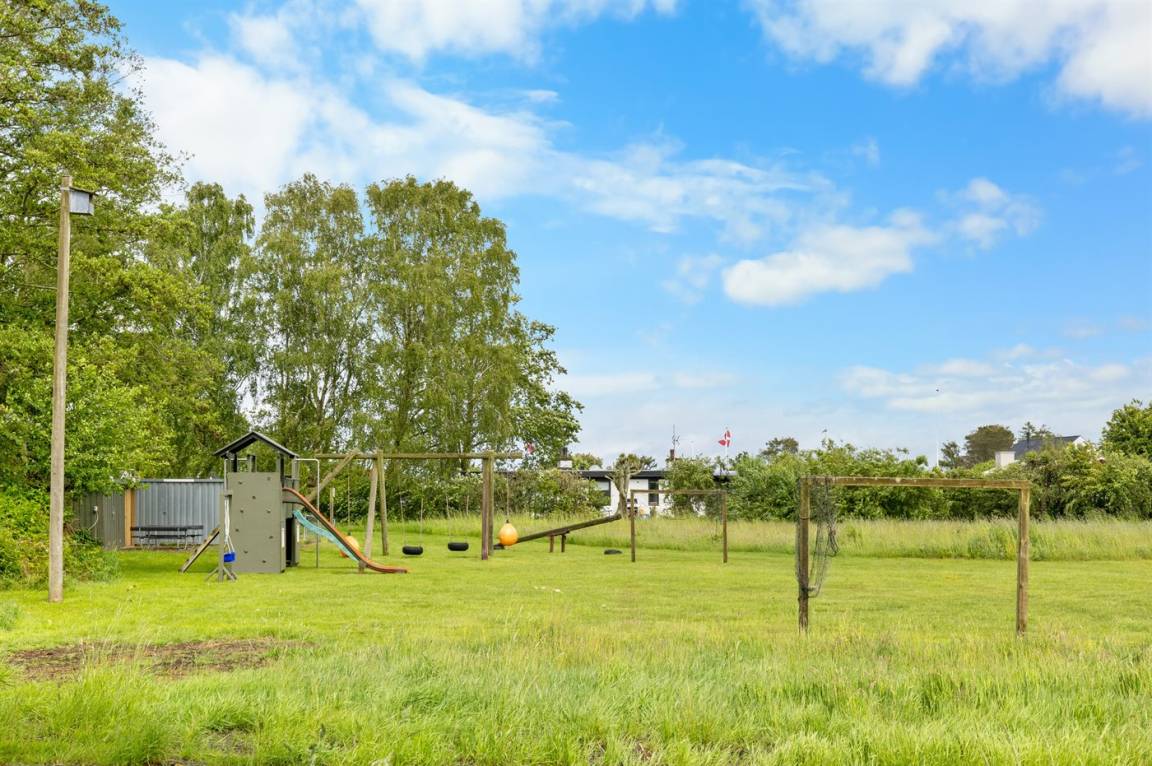 Hinter dem Haus gibt es außerdem eine Lagerfeuerstelle, und du hast direkten Zugang zum gemeinsamen Spielplatz, der sich direkt gegenüber dem Garten befindet.