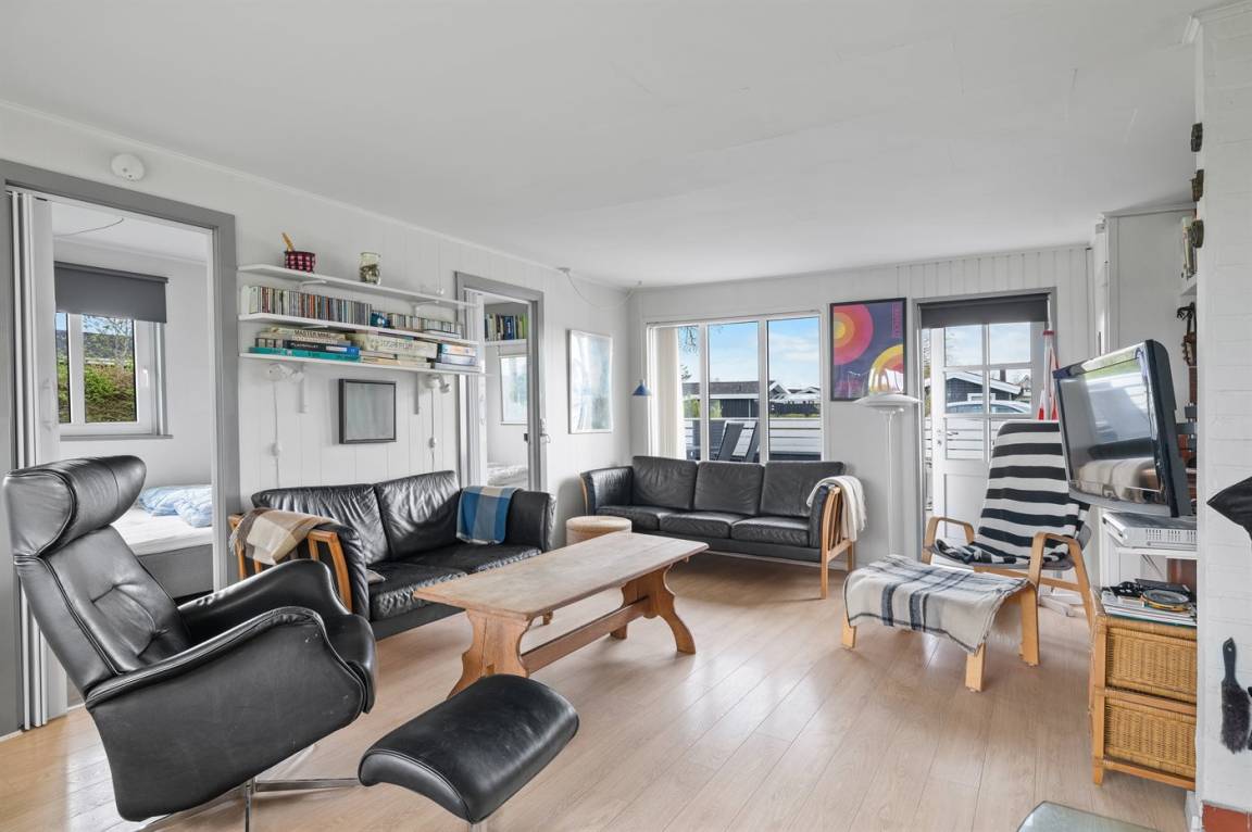 Ein gemütliches, kleines Ferienhaus in Tørresø, bei dem es sowohl vor als auch hinter dem Haus einladende Terrassenbereiche gibt. Vor dem Haus kannst du die nach Süden ausgerichtete Terrasse schließen, und hinter dem Haus findest du einen überdachten Terrassenbereich, der für die gemütlichen Sommerabende geradezu perfekt ist.