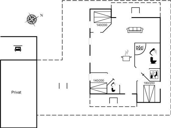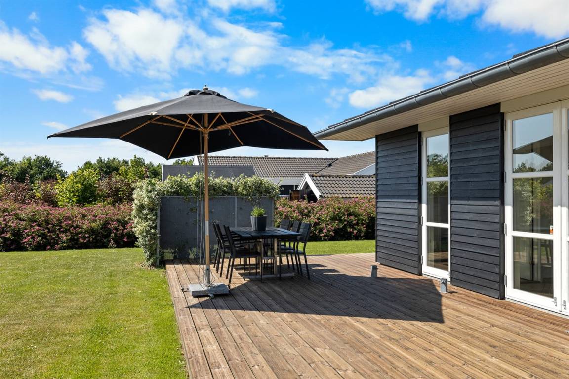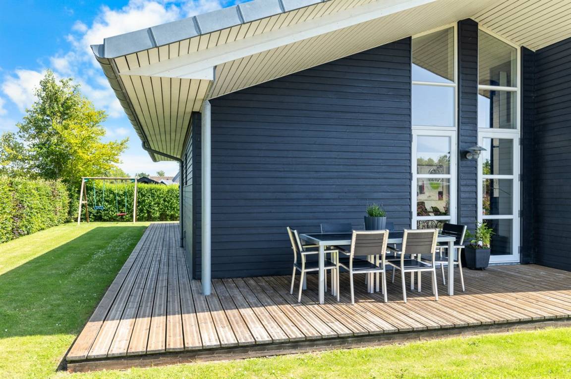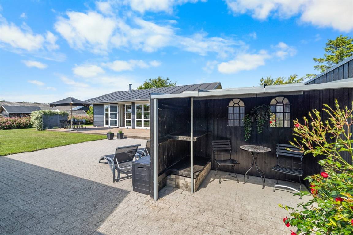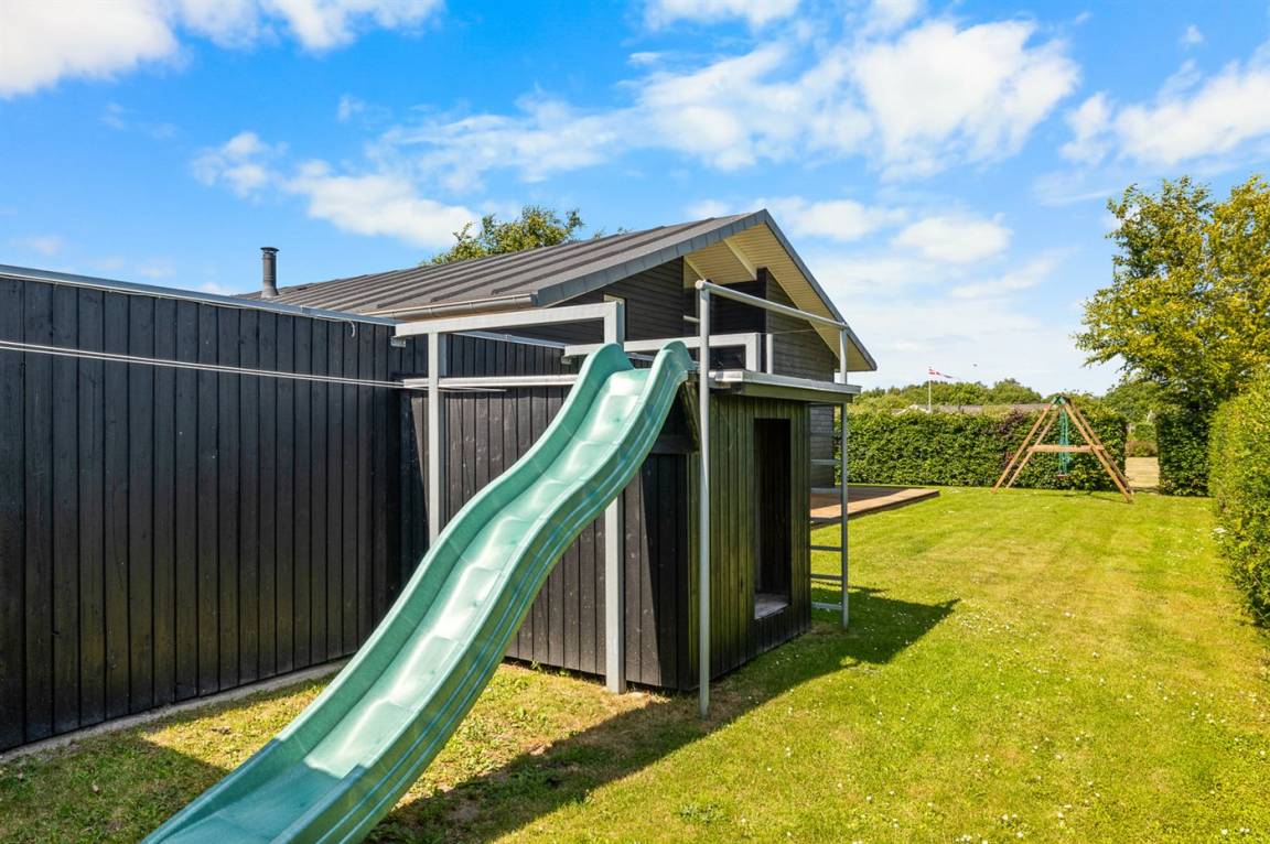 DraußenDie Ferienunterkunft liegt auf einem 1005 m² großen Gartengrundstück. Die Entfernung zum Meer beträgt 400 m. Die nächste Einkaufsmöglichkeit liegt 4600 m entfernt. Es steht ein offenes Terrassenareal zur Verfügung. Außerdem gibt es überdachte Terrasse. Schaukel. Sandkasten. Kinderspielhaus. Rutsche. Es steht ein Grill zur Verfügung. Es steht ein Carport zur Verfügung. Parkplatz auf dem Grundstück.