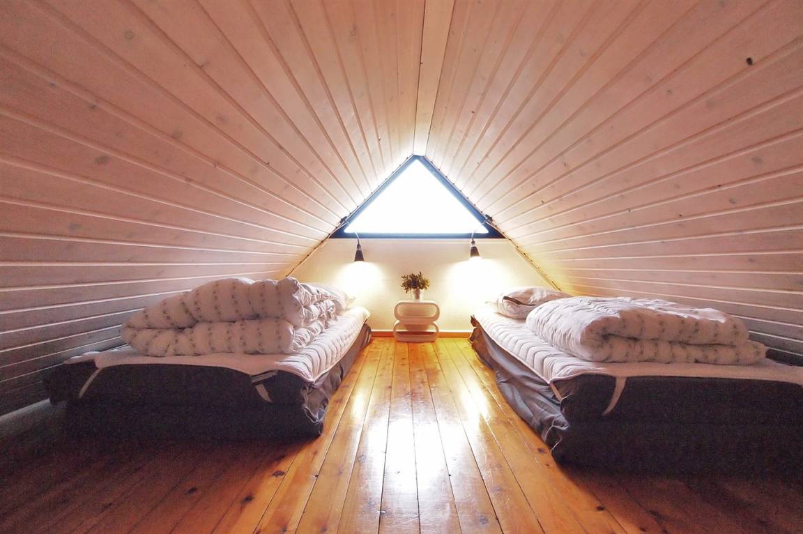 Bitte beachte, dass sich zwei der Schlafplätze im offenen Obergeschoss des Hauses befinden.