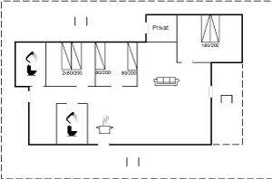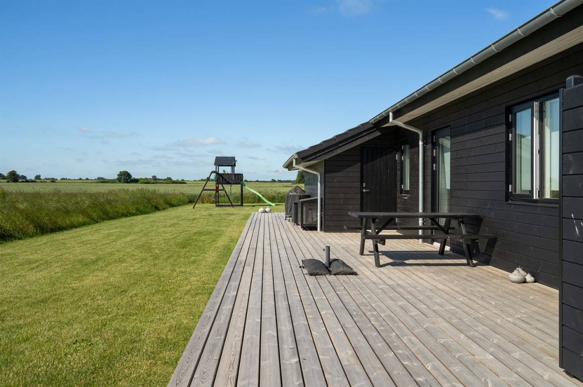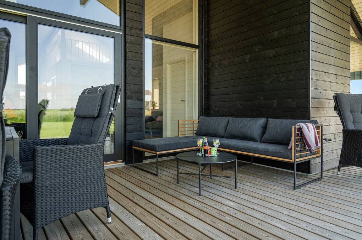 DraußenDie Ferienunterkunft liegt auf einem 1216 m² großen Gartengrundstück. Die Entfernung zum Meer beträgt 400 m. Die nächste Einkaufsmöglichkeit liegt 2500 m entfernt. Es steht ein 160 m² Terrassenareal zur Verfügung. Außerdem gibt es 35 m² überdachte Terrasse. Schaukel. Sandkasten. Außendusche. Es steht ein Grill zur Verfügung. Parkplatz auf dem Grundstück.