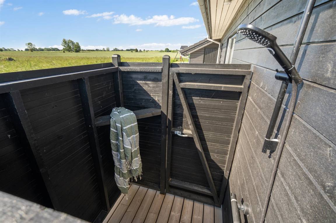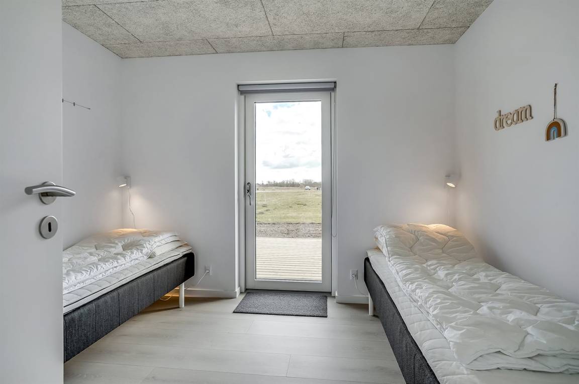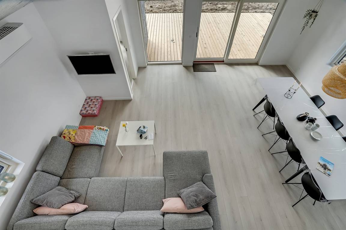 Dieses schöne, hell eingerichtete und ganz neu erbaute Ferienhaus liegt dicht am beliebten und kinderfreundlichen Badestrand bei Tørresø. Das Haus eignet sich für insgesamt 8 Personen und es stehen 3 helle Schlafzimmer zur Verfügung; 1 mit Doppelbett und 2 mit je 2 Einzelbetten, die evt. zusammengeschoben werden können. Außerdem gibt es 2 Schlafplätze im offenen Obergeschoss, das sich aufgrund der Zugänglichkeit über eine Leiter, am besten für die jungen Gäste eignet. Das Haus ist von einer schönen, großen Holzterrasse umgeben, wo u. a. eine Außendusche zur Verfügung steht.