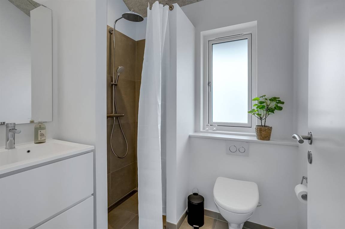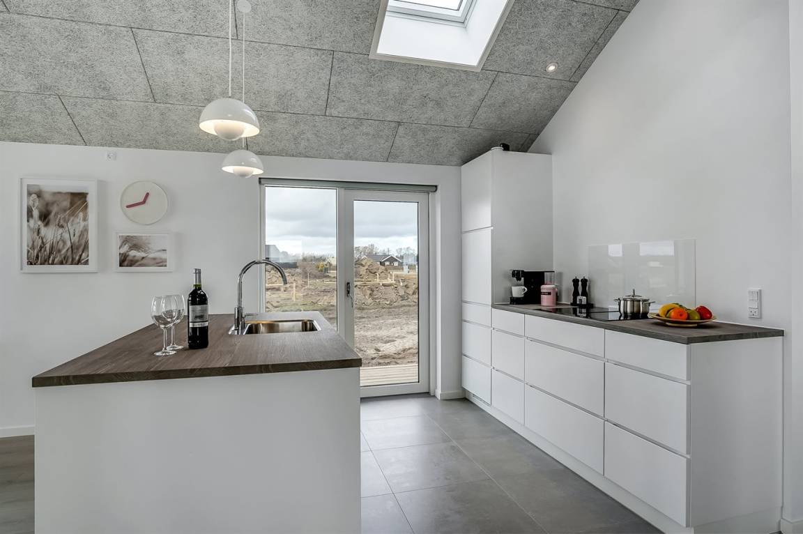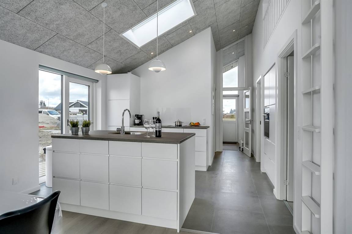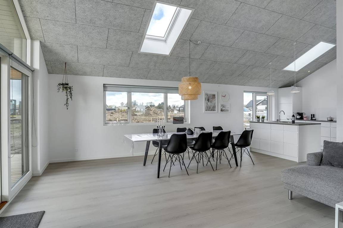 Dieses schöne, hell eingerichtete und ganz neu erbaute Ferienhaus liegt dicht am beliebten und kinderfreundlichen Badestrand bei Tørresø. Das Haus eignet sich für insgesamt 8 Personen und es stehen 3 helle Schlafzimmer zur Verfügung; 1 mit Doppelbett und 2 mit je 2 Einzelbetten, die evt. zusammengeschoben werden können. Außerdem gibt es 2 Schlafplätze im offenen Obergeschoss, das sich aufgrund der Zugänglichkeit über eine Leiter, am besten für die jungen Gäste eignet. Das Haus ist von einer schönen, großen Holzterrasse umgeben, wo u. a. eine Außendusche zur Verfügung steht.