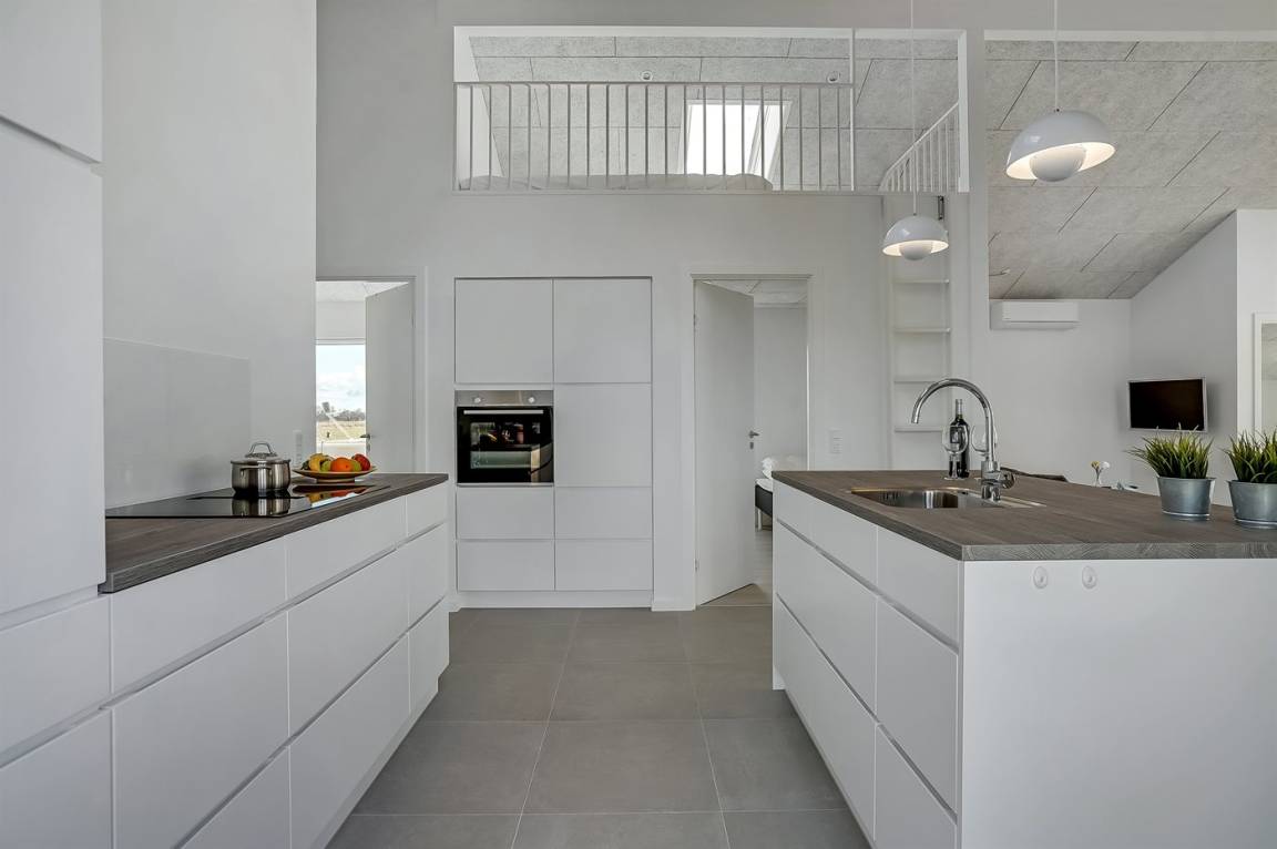 KücheDie Küche ist mit Kühlschrank ausgestattet. Außerdem gibt es 4 Induktions-Kochzonen, Umluftofen, Mikrowelle sowie Geschirrspüler.