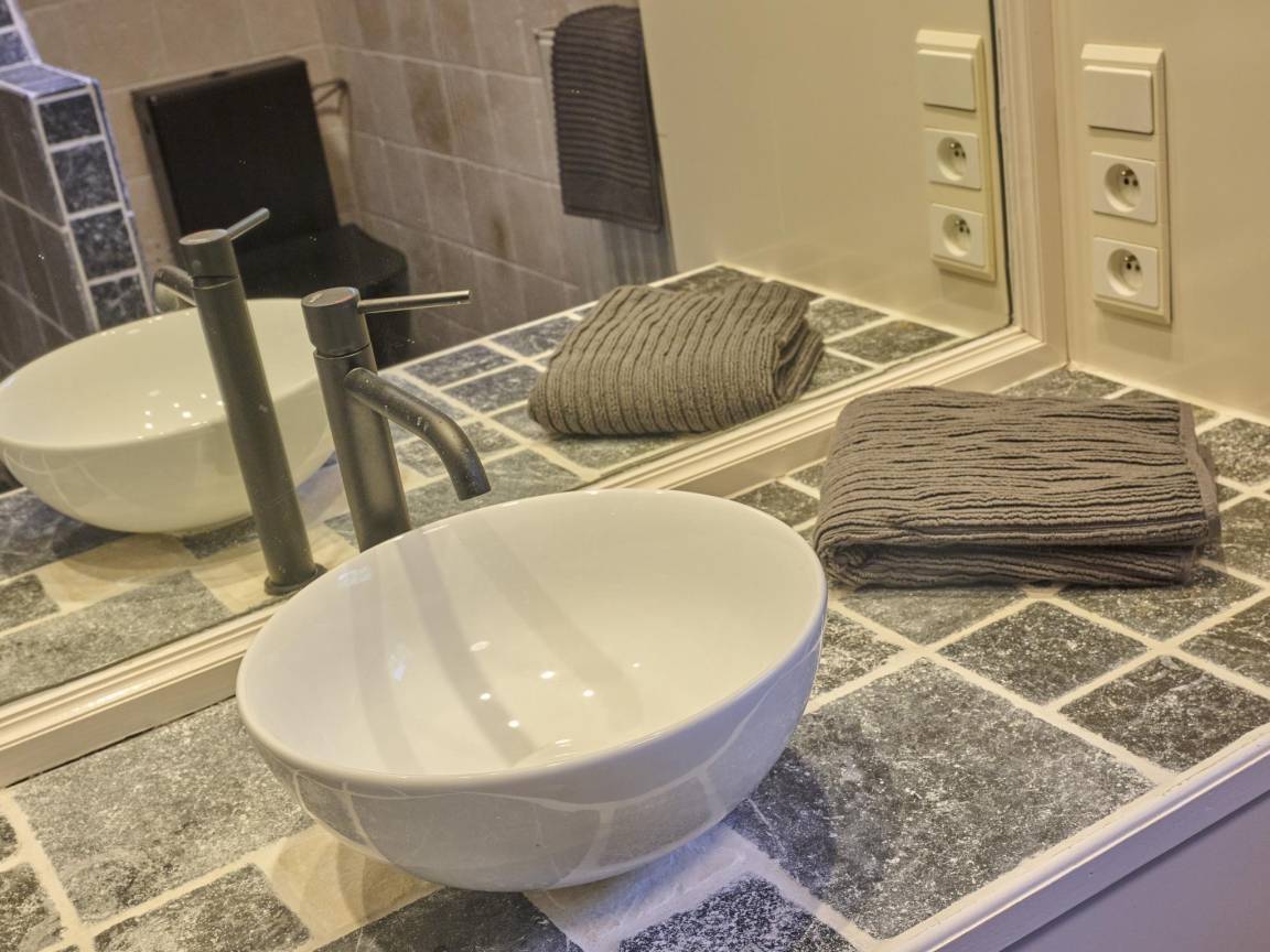 Layout : Parterre: Eingang, Wohnzimmer mit TV(Nur Streaming), Esstisch, Kamin, Sitzecke, Radio, Gesellschaftsspiele , Küche mit Wasserkocher, Toaster, Kochherd(5 Kochplatten), Dunstabzugshaube, Kaffeemaschine(Filter, nespresso cups), Backofen, Mikrowelle, Geschirrspüler, Kühlschrank, Tiefkühlschrank , Badezimmer mit Waschbecken, Dusche, Toilette , Heizung(Zentral)