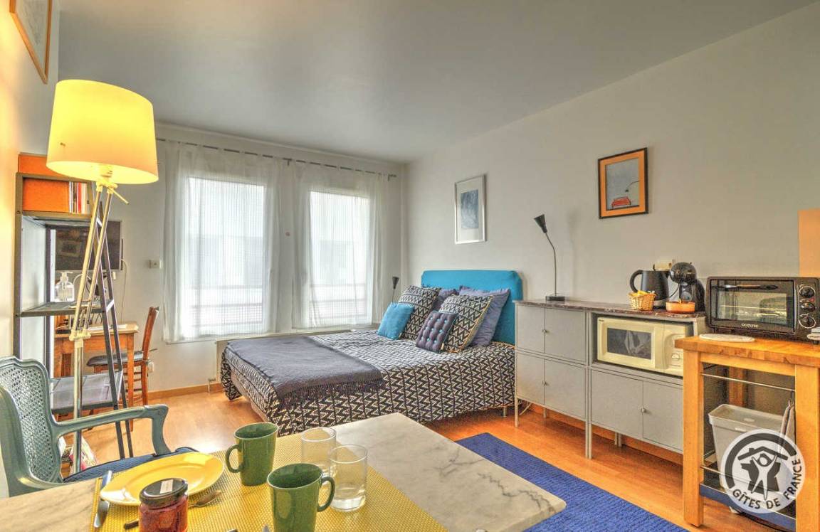 „J'ai beaucoup apprécié mon séjour dans ce studio vraiment charmant. L'accueil bienveillant de la propriétaire, la propreté impeccable, le calme du quartier, tout était parfait!“
