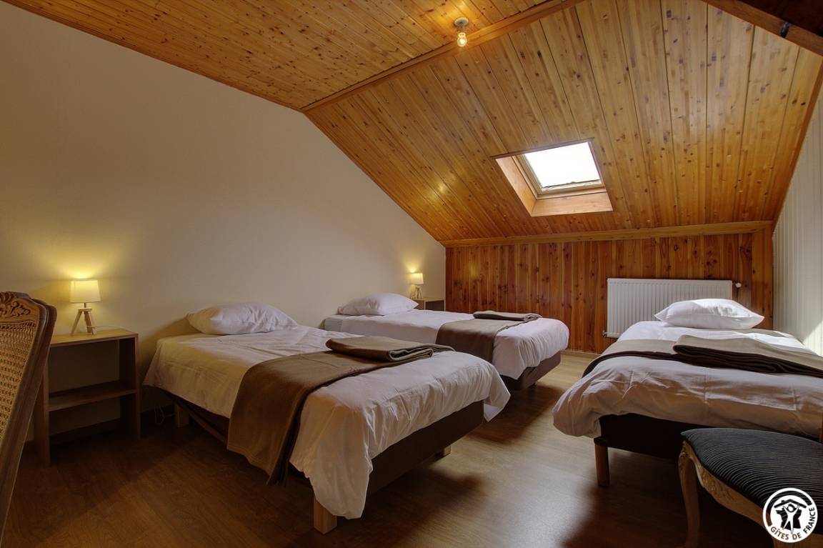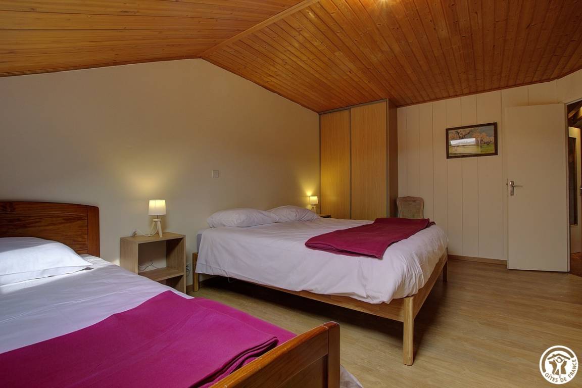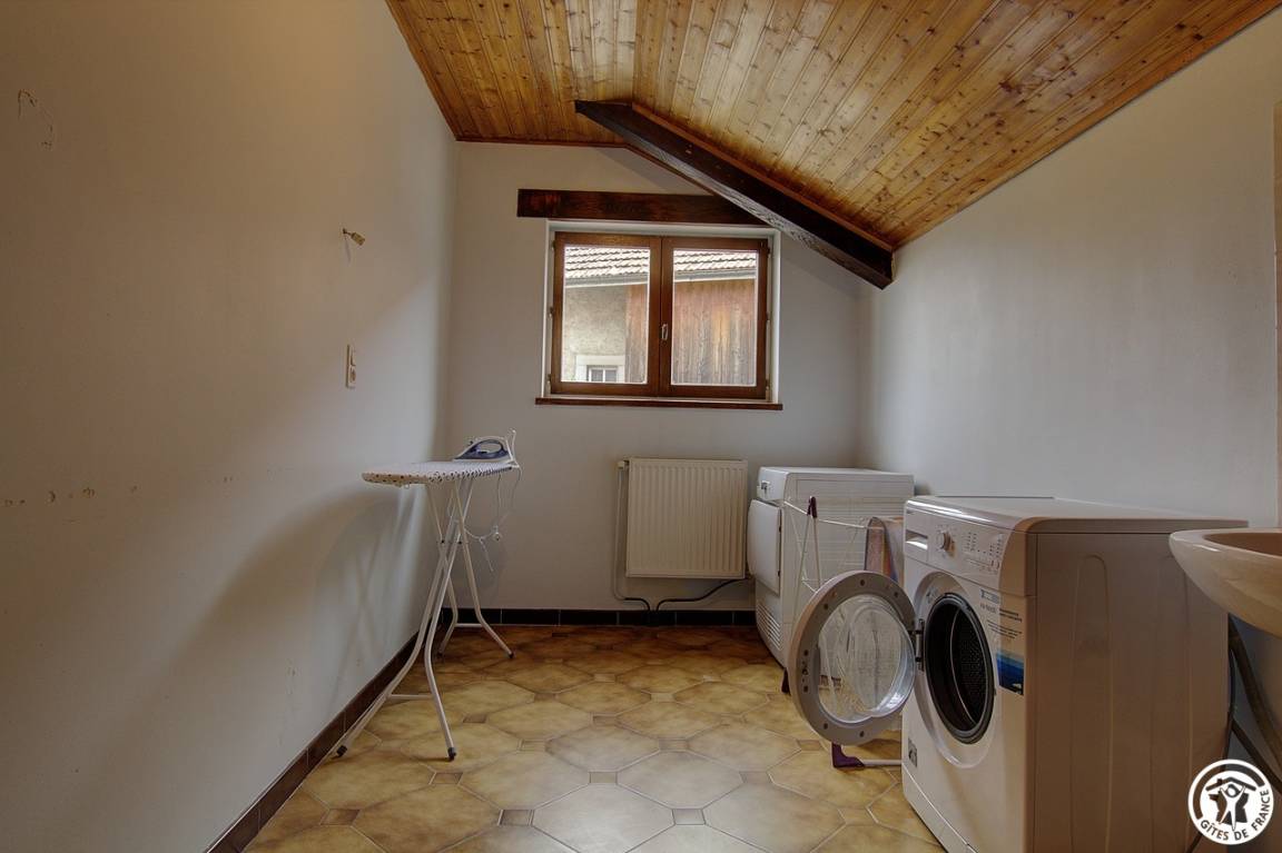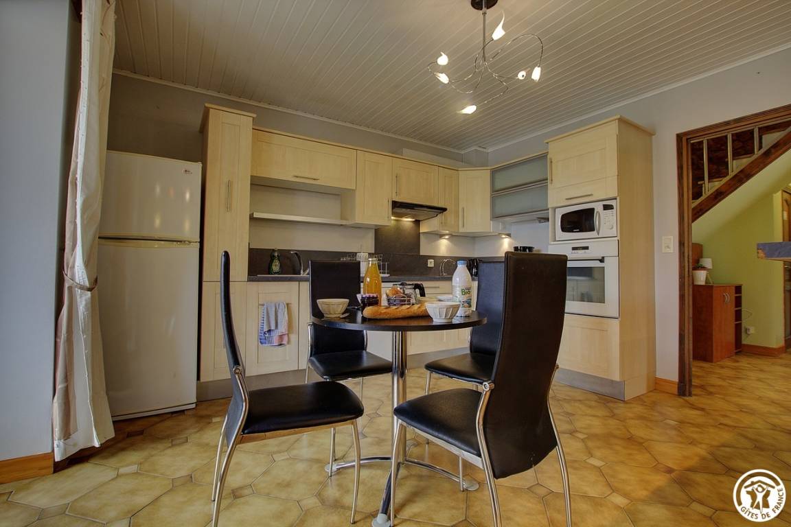 Diese 127 m² große, zweistöckige Unterkunft bietet dank drei großer Schlafzimmer mit modularen Betten Platz für bis zu 8 Personen. Der separate Eingang führt zu einem Flur mit großem Skischrank und einer Innentreppe, die zu einer Waschküche mit Waschmaschinen, Trocknern und Haushaltsutensilien führt. Der Eingang der Gîte führt zu einem Flur, der zu einem Wohnzimmer, einem Esszimmer und einer Sitzecke mit Holzofen sowie einer halboffenen, ausgestatteten Küche führt. Der Zugang zur Terrasse (16 m²) erfolgt direkt vom Wohnzimmer oder der Küche. Ein separates WC, ein Badezimmer mit ebenerdiger Dusche und ein Doppelwaschbecken runden diese Etage ab. Die zweite Etage besteht aus einem Badezimmer (Badewanne und Dusch