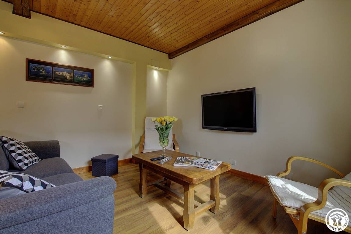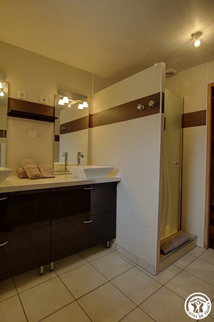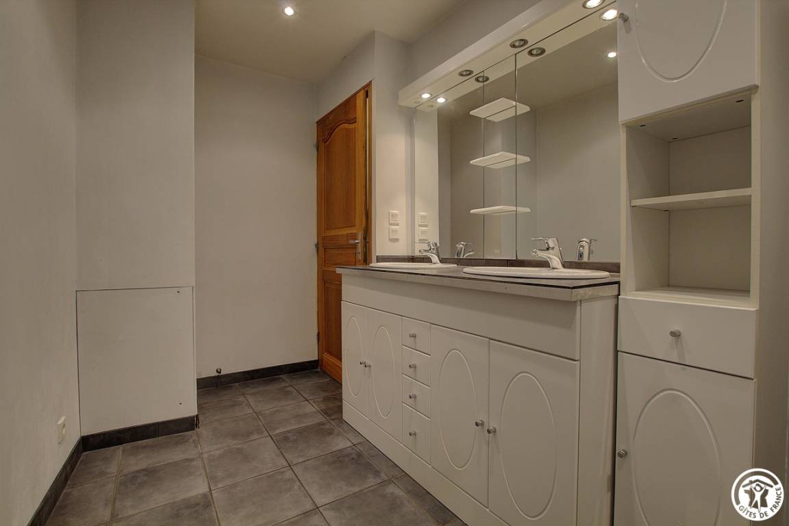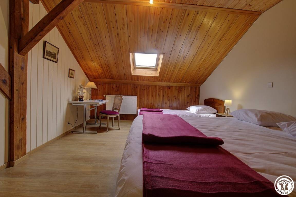 Diese 127 m² große, zweistöckige Unterkunft bietet dank drei großer Schlafzimmer mit modularen Betten Platz für bis zu 8 Personen. Der separate Eingang führt zu einem Flur mit großem Skischrank und einer Innentreppe, die zu einer Waschküche mit Waschmaschinen, Trocknern und Haushaltsutensilien führt. Der Eingang der Gîte führt zu einem Flur, der zu einem Wohnzimmer, einem Esszimmer und einer Sitzecke mit Holzofen sowie einer halboffenen, ausgestatteten Küche führt. Der Zugang zur Terrasse (16 m²) erfolgt direkt vom Wohnzimmer oder der Küche. Ein separates WC, ein Badezimmer mit ebenerdiger Dusche und ein Doppelwaschbecken runden diese Etage ab. Die zweite Etage besteht aus einem Badezimmer (Badewanne und Dusch