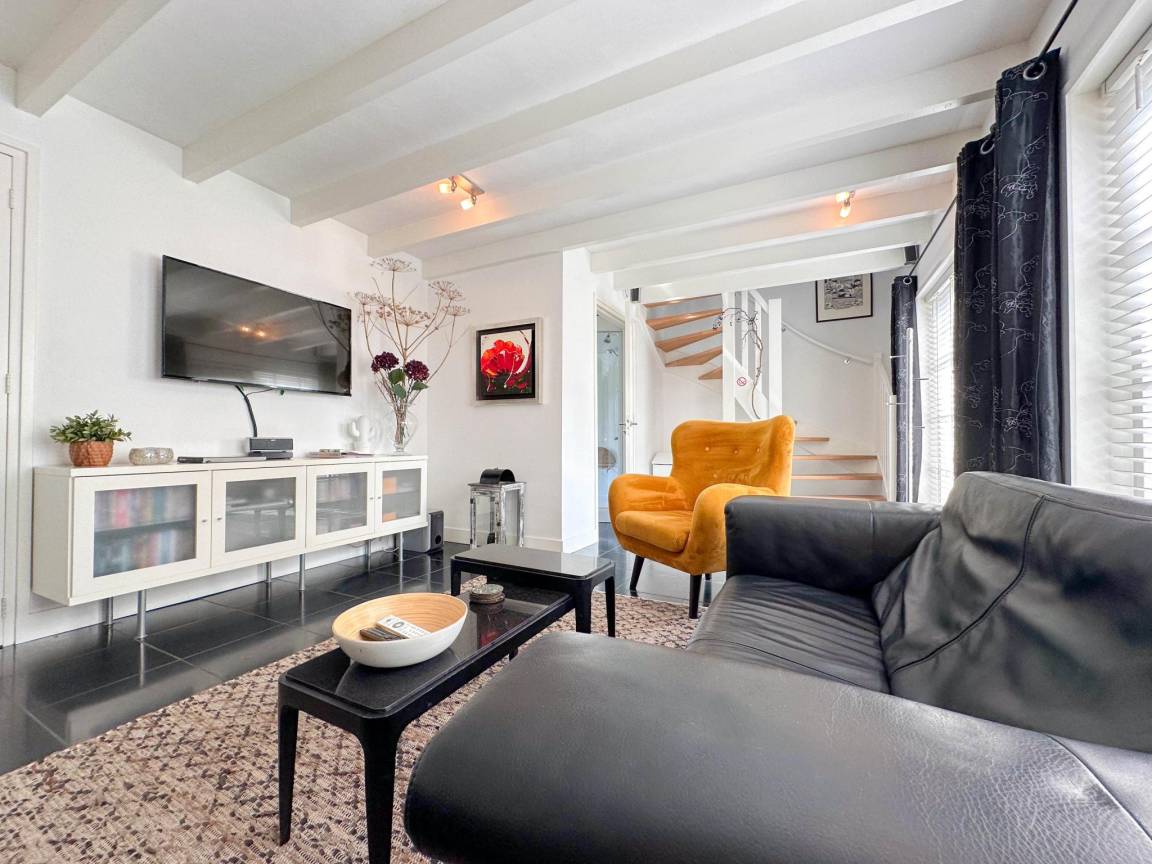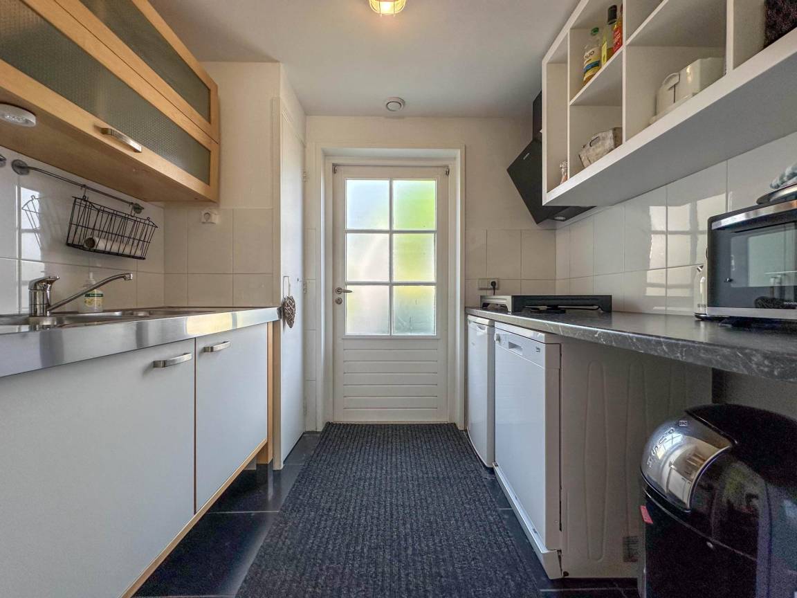 Layout : Parterre: Küche mit Wasserkocher, Kochherd(4 Kochplatten, Induktion), Kaffeemaschine(cups, pads), Backofen, Geschirrspüler, Kühlschrank(+ Gefrierfach) , Wohn/Esszimmer mit TV(smart TV, Niederländische TV-Kanäle, Deutsch Fernsehsender), DVD-Player, Radio , Badezimmer mit Wellness Badewanne, Dampfdusche, Waschbecken , Sauna(alleinige Nutzung)