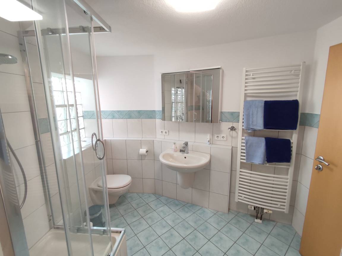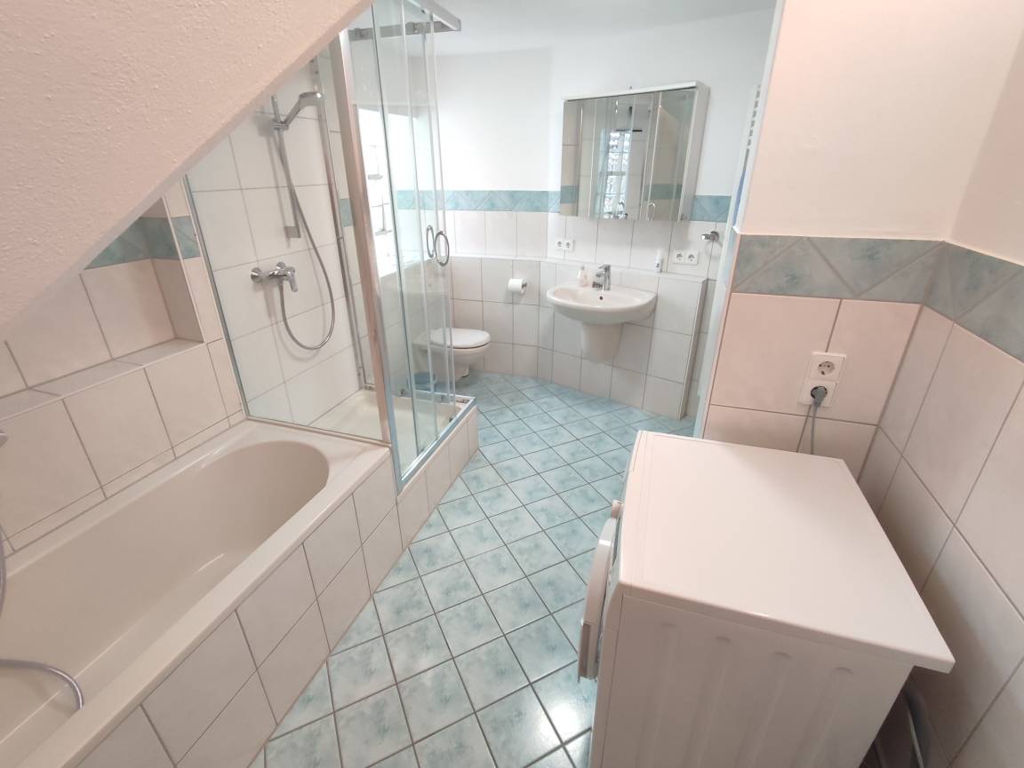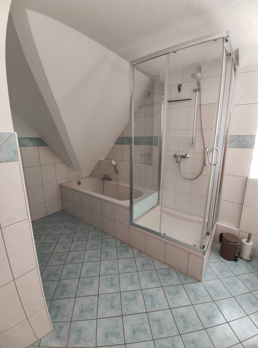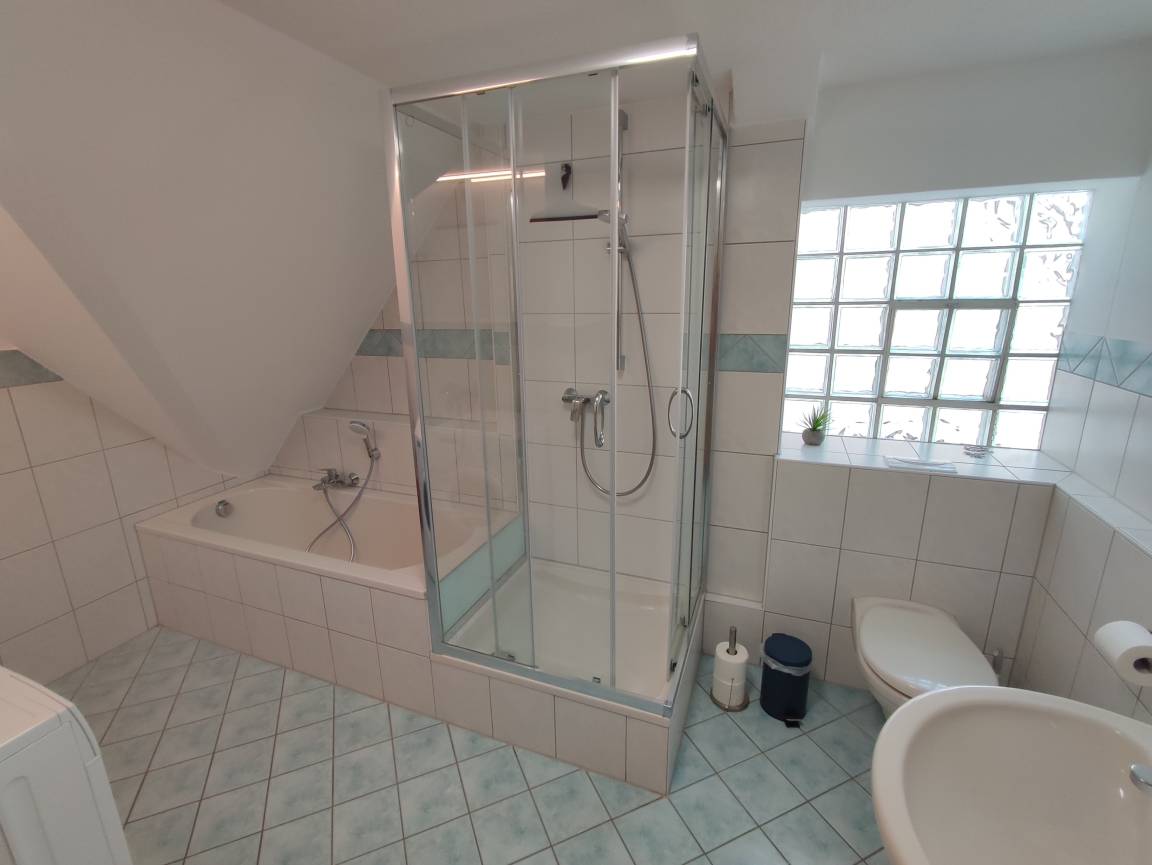 1 großes Bad mit Dusche,Badewanne und WC