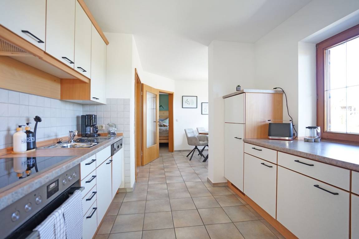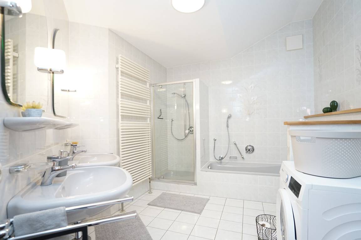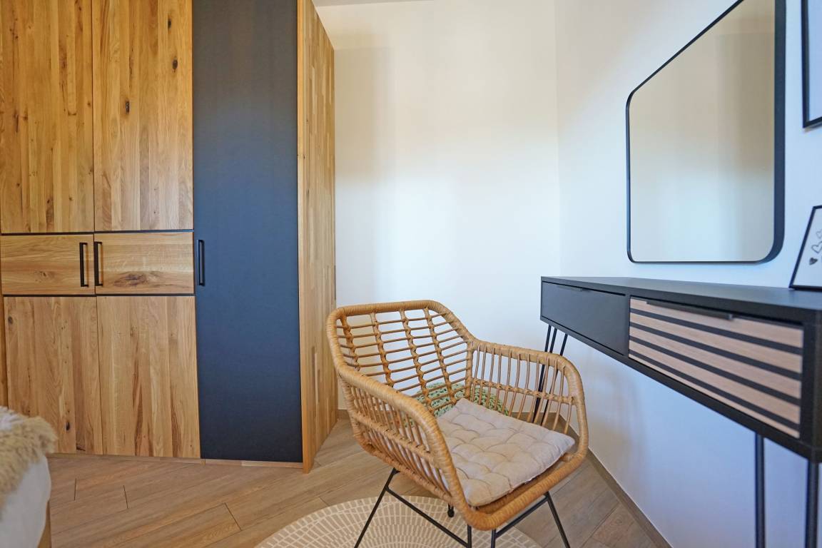 Es erwartet Sie ein großzügiger, gemütlich eingerichteter Wohnraum mit Terrassenzugang und komfortabler Schlafcouch (max. 2 Kindern), eine voll ausgestattete Küche mit einer modernen Essgruppe, ein Schlafzimmer mit Doppelbett und einem geräumigen Kleiderschrank und ein großzügiges Badezimmer mit Badewanne, Dusche, WC und Waschmaschine.