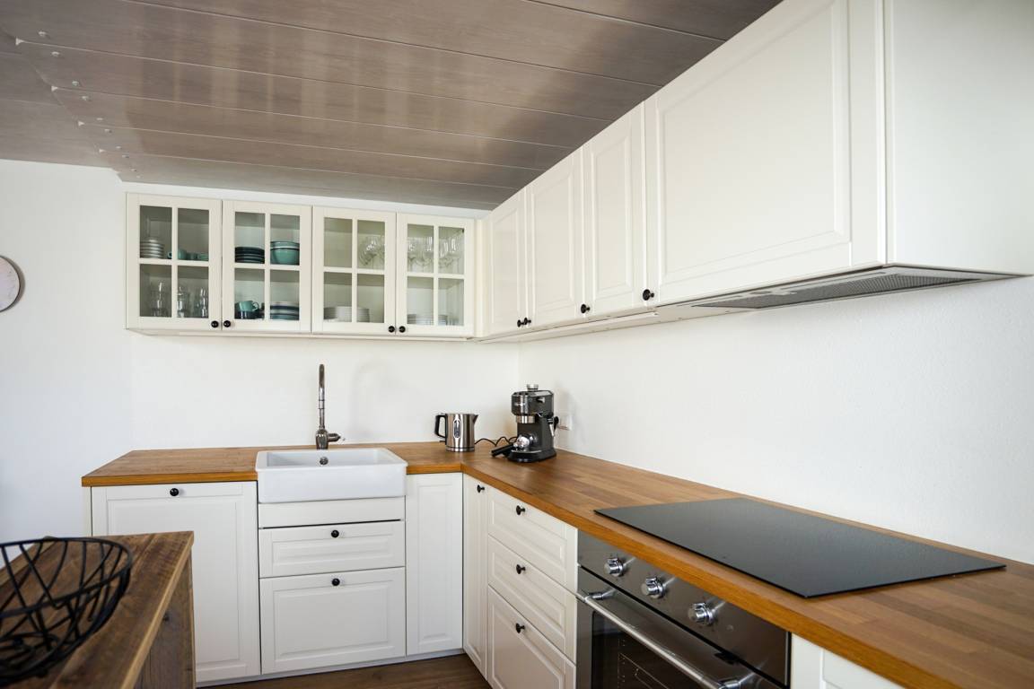 komplett eingerichtete Küche inkl. Induktionsfeld mit 4 Platten, Backofen, Geschirrspülmaschine, Kaffeemaschine, Toaster, Wasserkocher uvm.