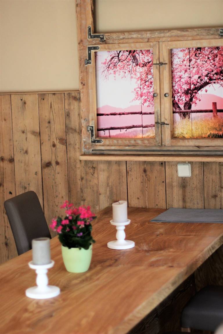 Ihr Urlaub liegt uns am Herzen. Unser höchster Anspruch ist, dass sie sich in unserer Ferienwohnung garantiert wohlfühlen. Alles ist in Harmonie aufeinander abgestimmt und lädt dazu ein Ihre Sinne zu berühren. Ein Großteil der Möbel, Wandverkleidungen und Deko wurden aus uralten Dielen und Balken, unbesäumten Holzbohlen zu waren Schmuckstücken getischlert.