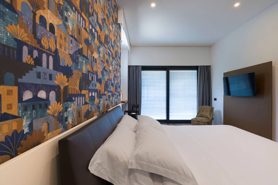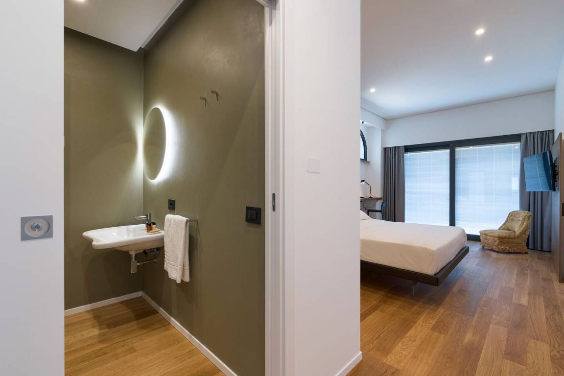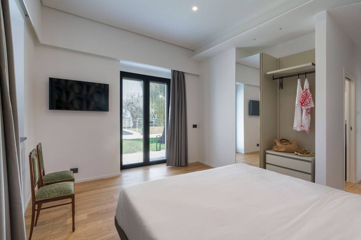 Schlafzimmer mit Bad 1: großes Doppelbett, WiFi Internet, Internet, Klimaanlage, Satelliten-TV, Waschbecken, WC, Bidet, Dusche, Fön, Ausgang auf die Terrasse.